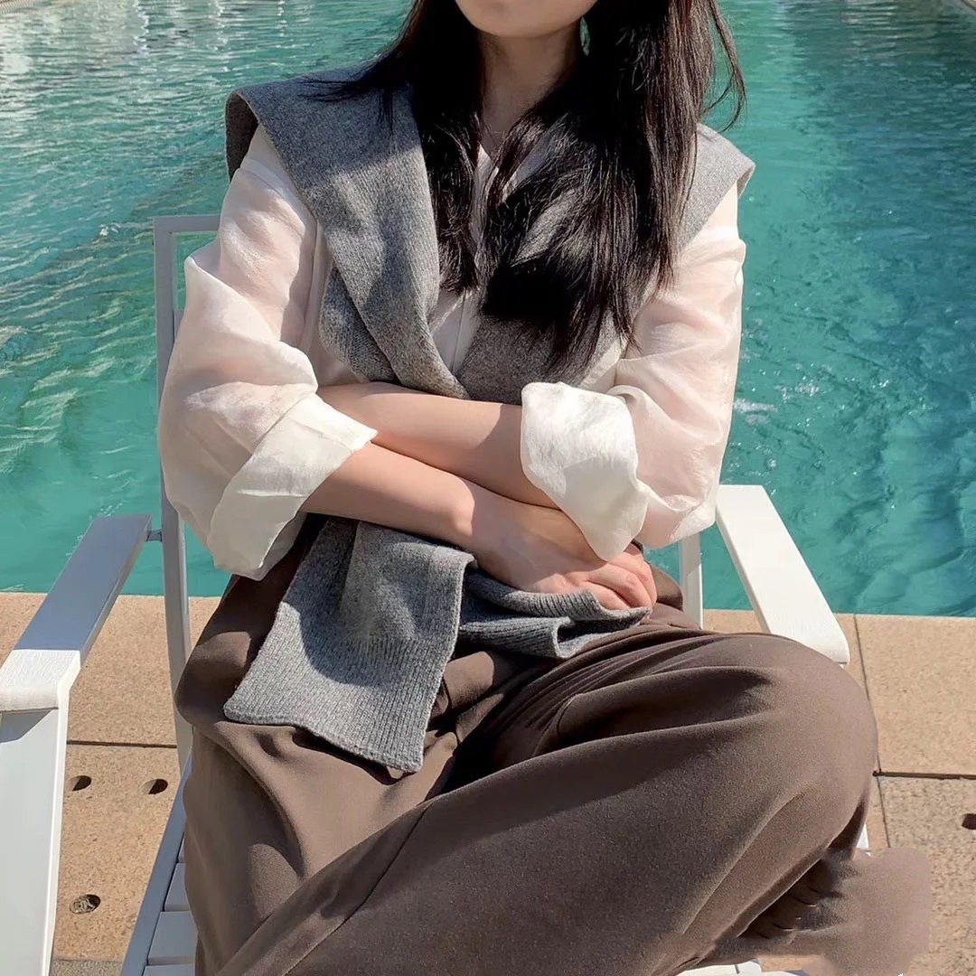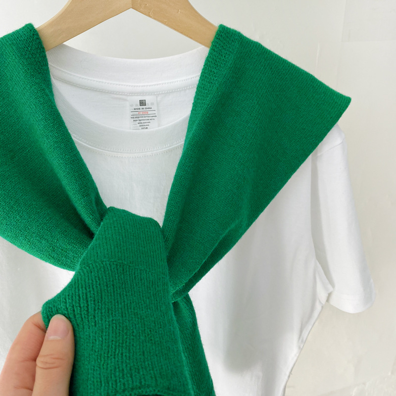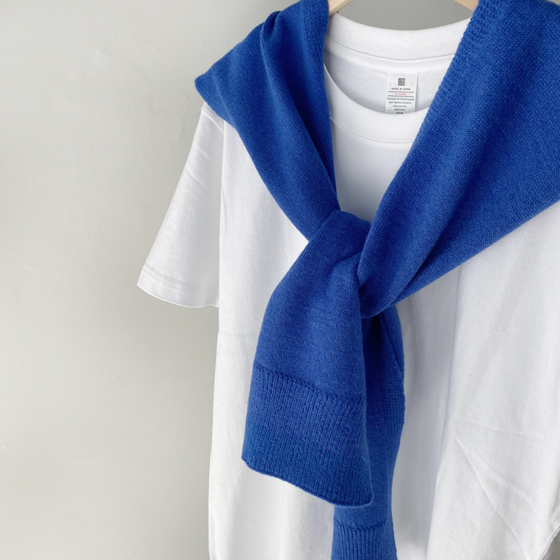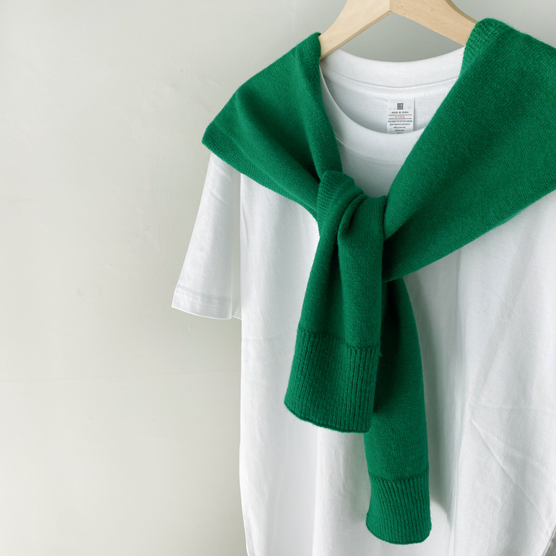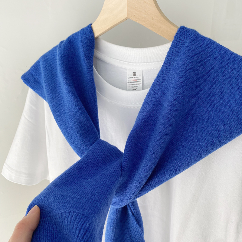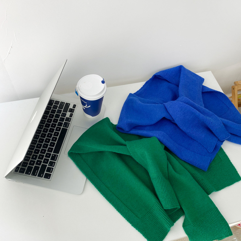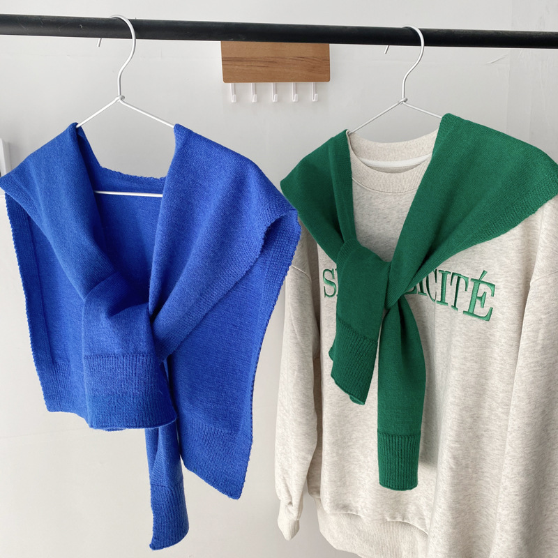Южная Корея Dongdaemun осень и зима Новый плечо маленький шаль сплошной цвет вязаный шаль с Интернет знаменитости узел шарф