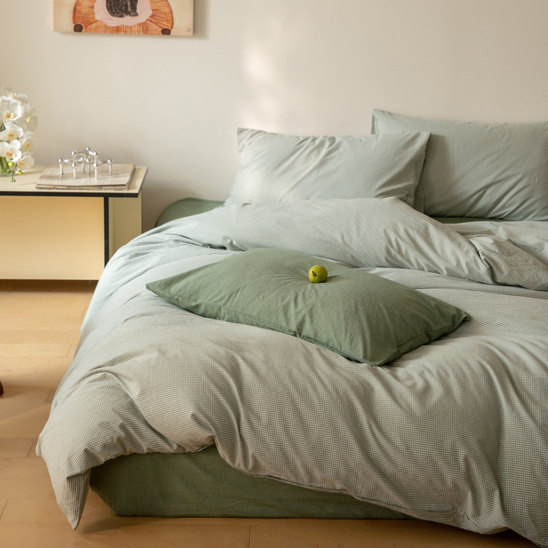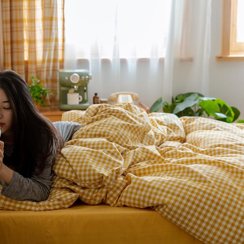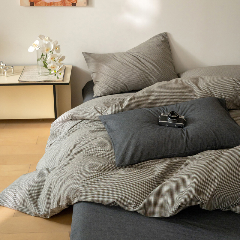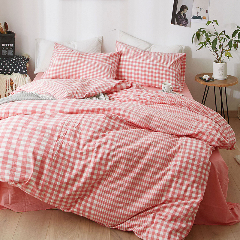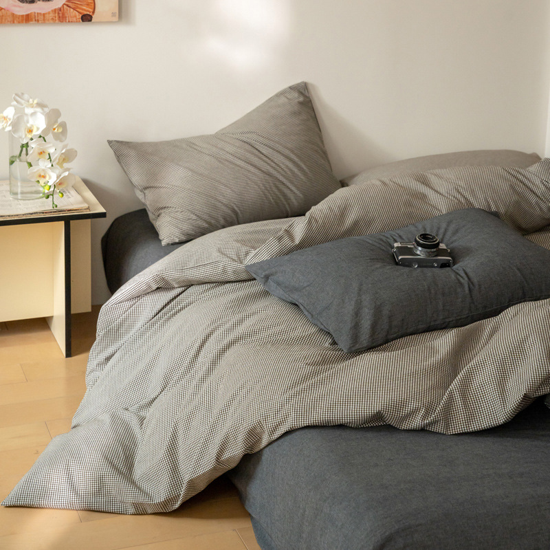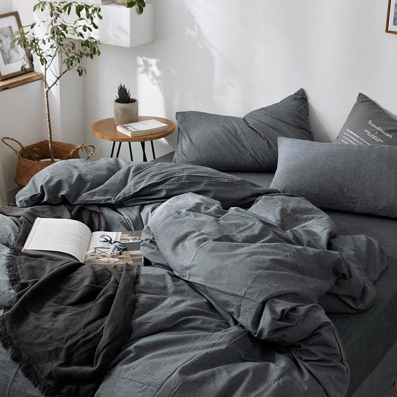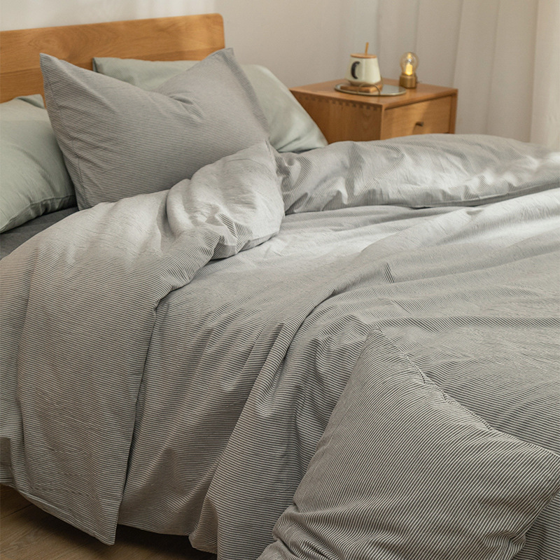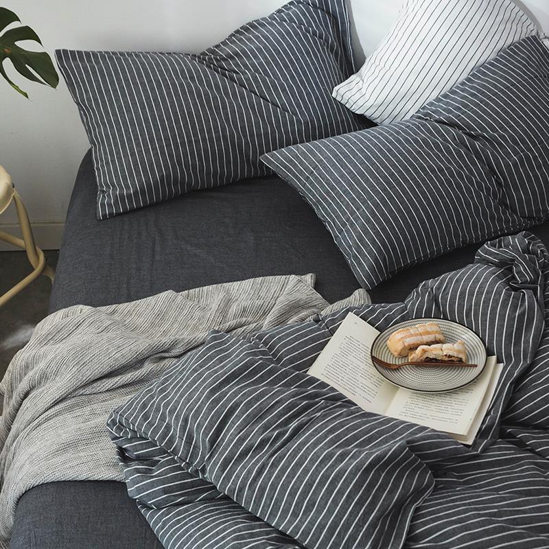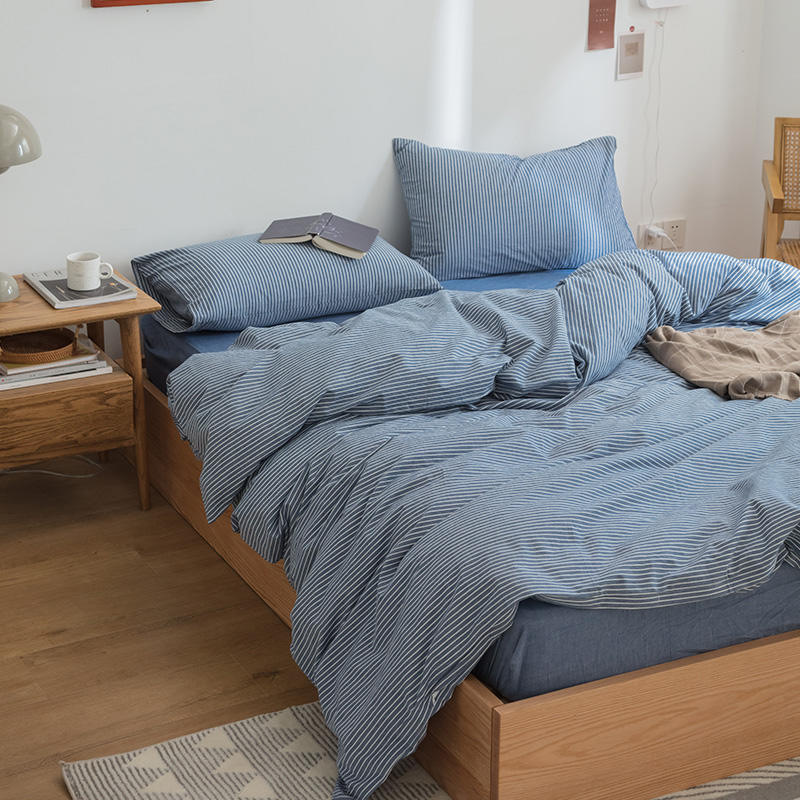 Хлопчатобумажная пряжа-окрашенный промытый хлопок из четырех частей хлопка без принта производители поставляют постельные принадлежности пододеяльник хорошее постельное белье в японском стиле оптом
