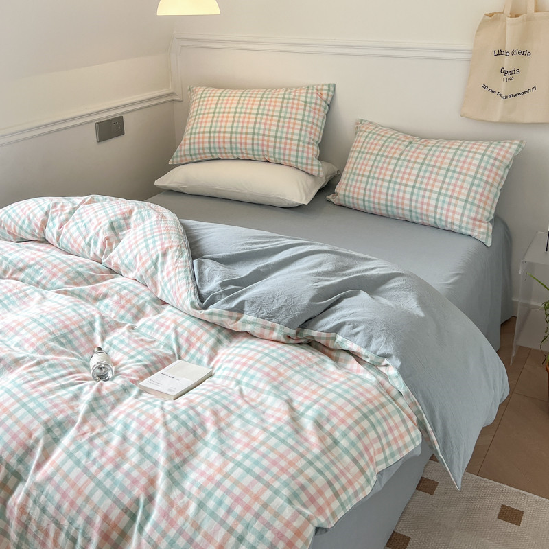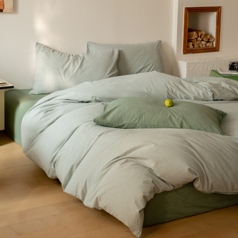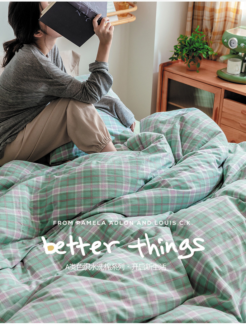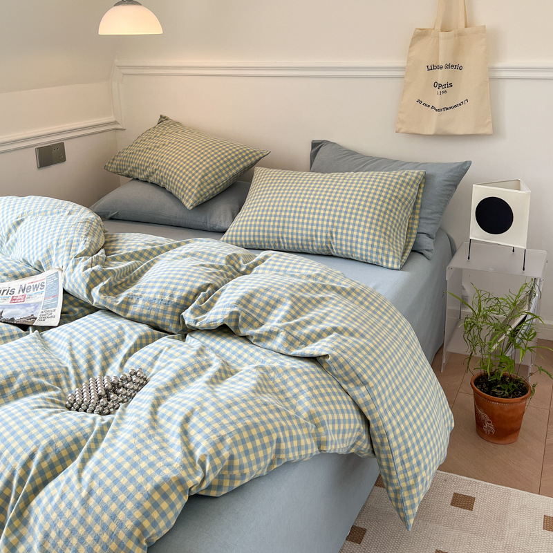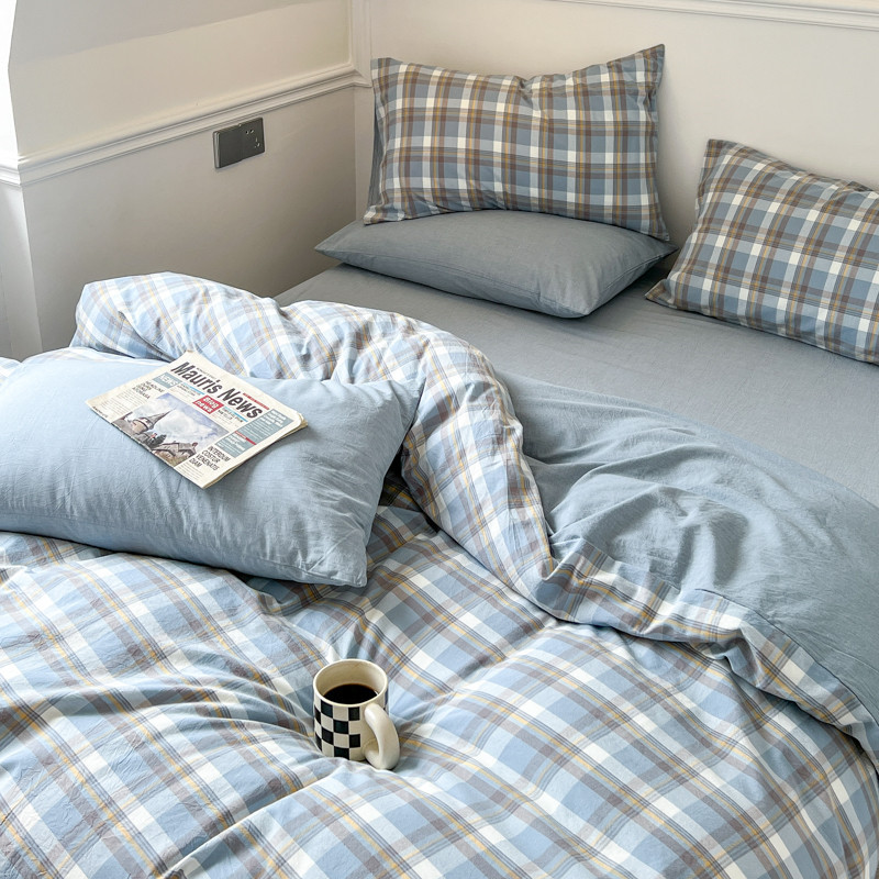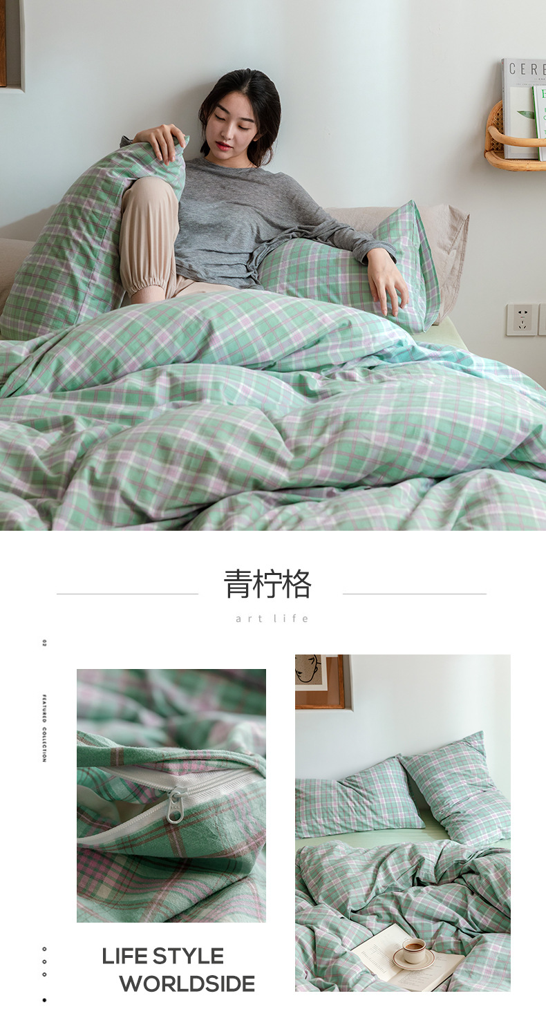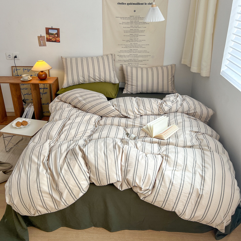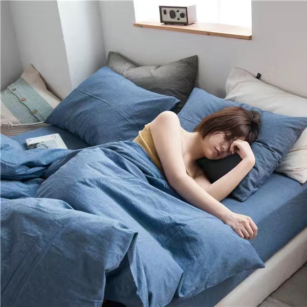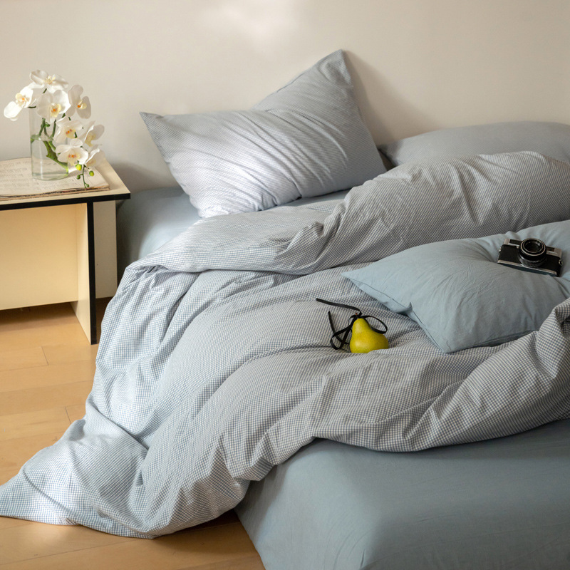 Хлопчатобумажная пряжа-окрашенный промытый хлопок из четырех частей хлопка без принта производители поставляют постельные принадлежности пододеяльник хорошее постельное белье в японском стиле оптом