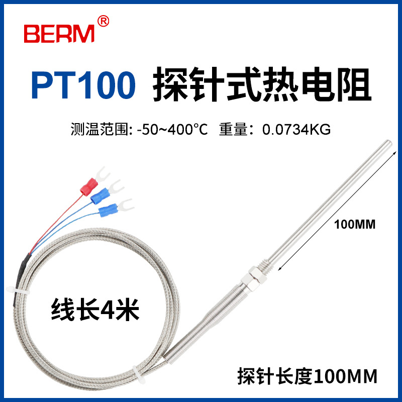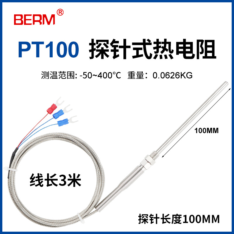 Датчик температуры PT100, платиновый термометр, трехпроводной резьбовой зонд, игольчатый датчик температуры, термостатический зонд.