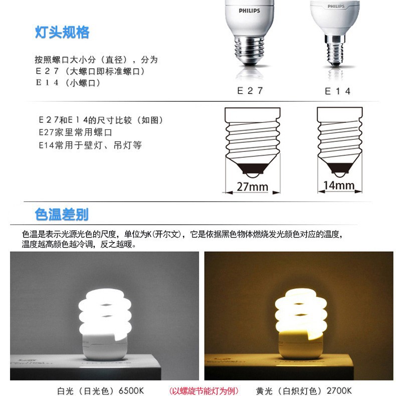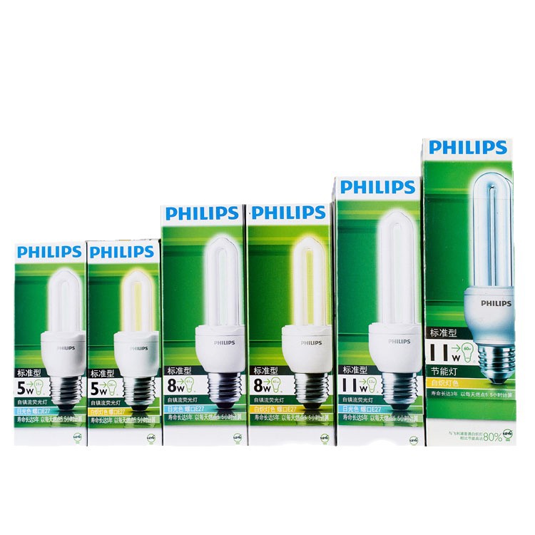 Энергосберегающая светодиодная лампа Philips с тремя цветами света, спиральная, с цоколем E27/E14, настольная лампа, U-образная люминесцентная лампа, энергосберегающая и экономичная.