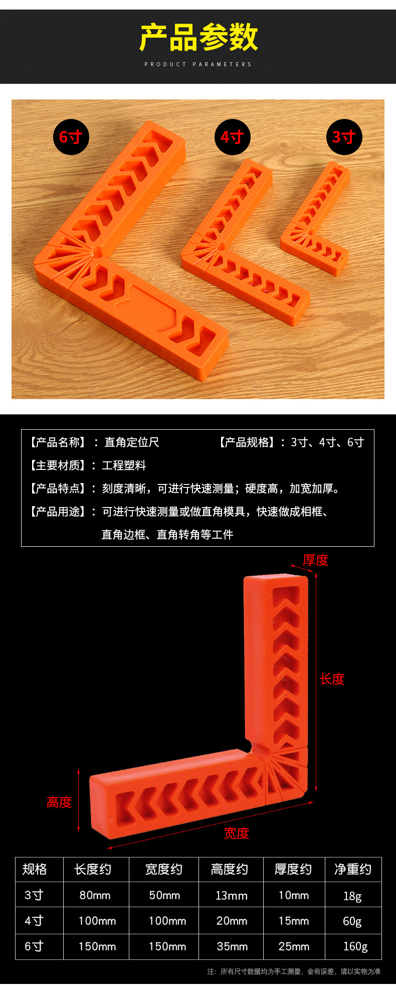 3-дюймовая квадратная линейка 80 мм; 4-дюймовая квадратная линейка 100 мм; 6-дюймовая квадратная линейка 150 мм