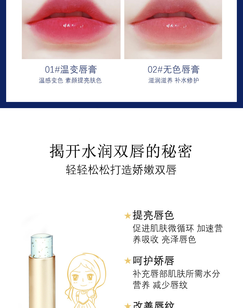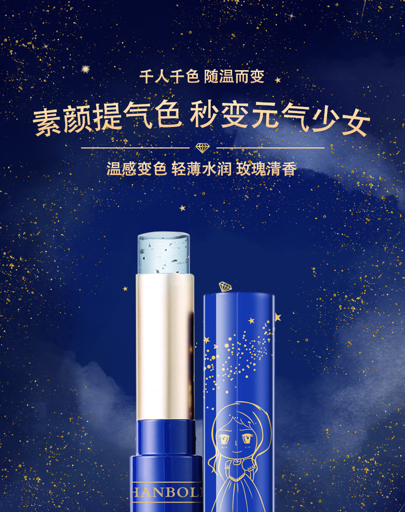 Han Boli Little Princess Бальзам для губ 24K изменение температуры увлажняющий бальзам для губ Student Lipstick High Color Value