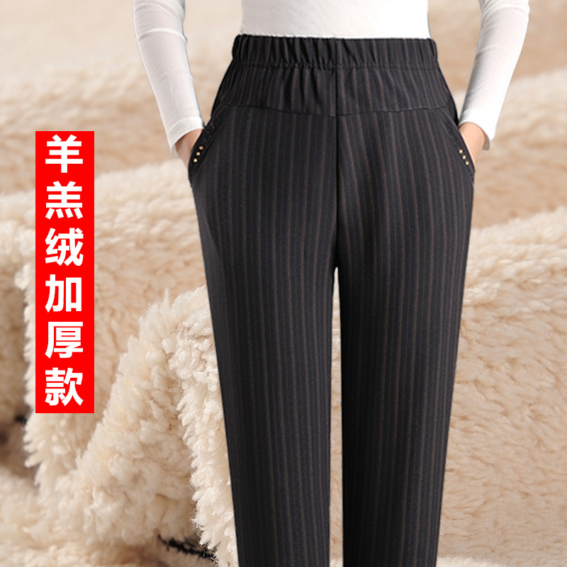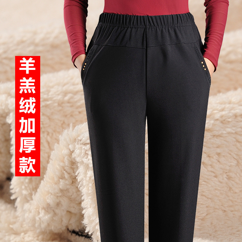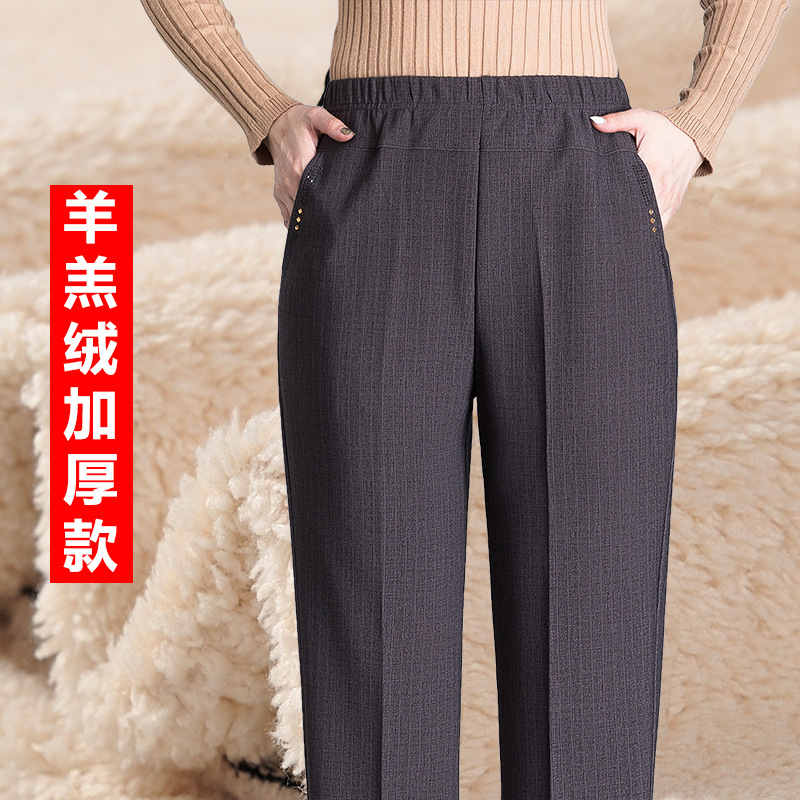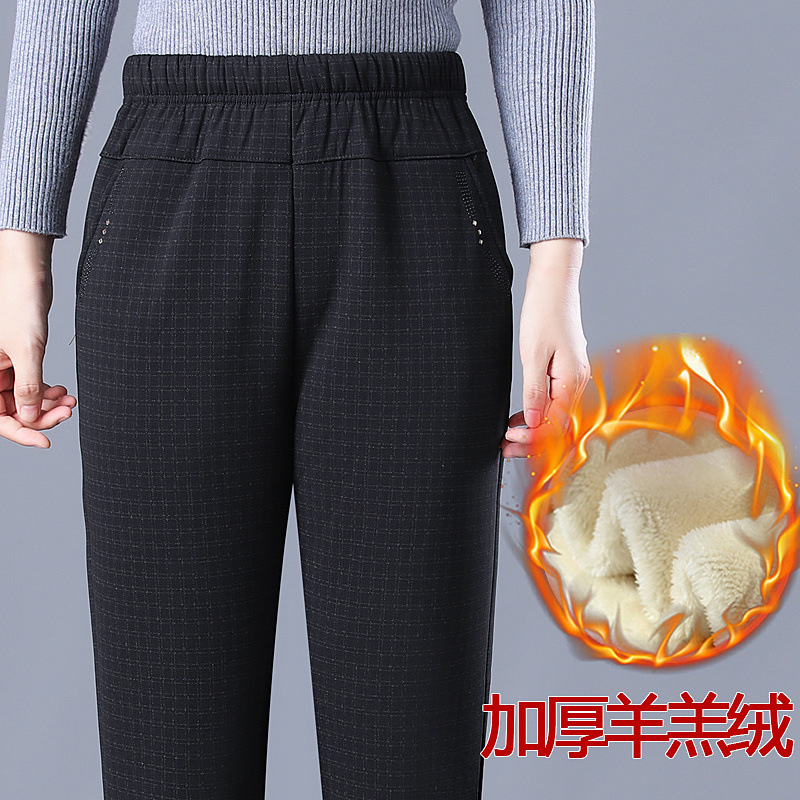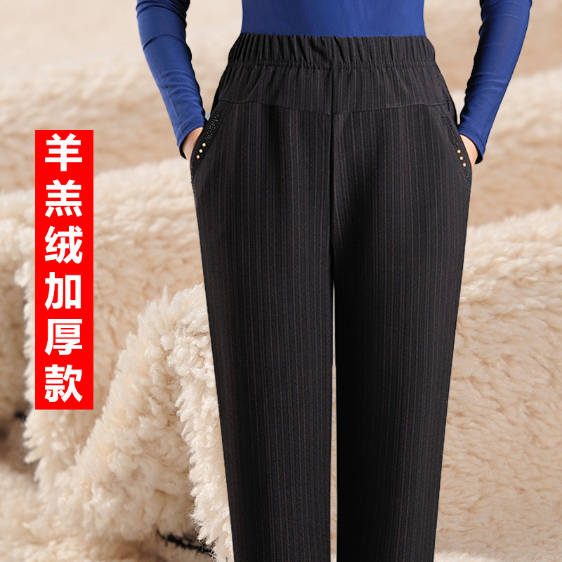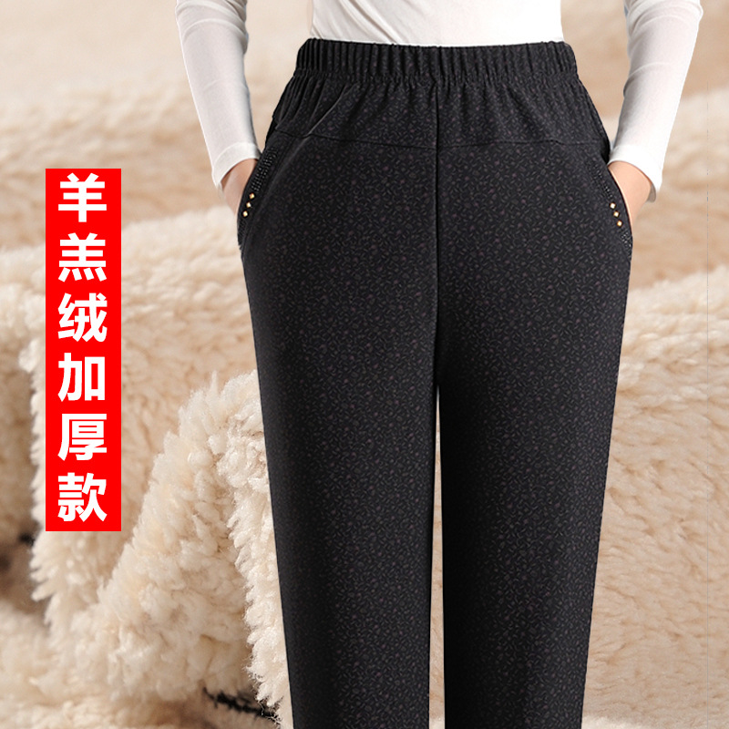 Брюки для мам, осенне-зимние брюки для пожилых людей плюс толстые большие размеры 200 кг, свободные толстые прямые брюки для бабушки на флисовой подкладке