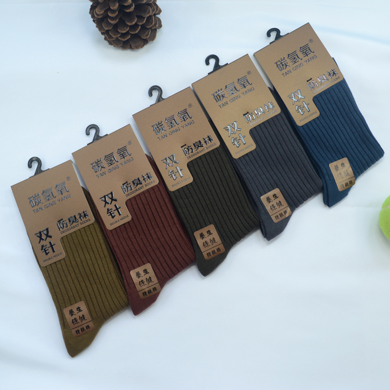 Мужские носки средней длины, разноцветные, устойчивые к запаху, двойная вязка, мужские хлопковые носки, универсальный деловой стиль, однотонные носки Zhuji оптом