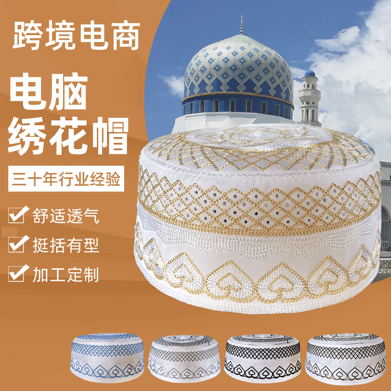 Мужская шляпа для поклонения нового стиля, вышитая взрослая полосатая однотонная мусульманская шляпа с плоским верхом и принтом, этническая Исламская шляпа