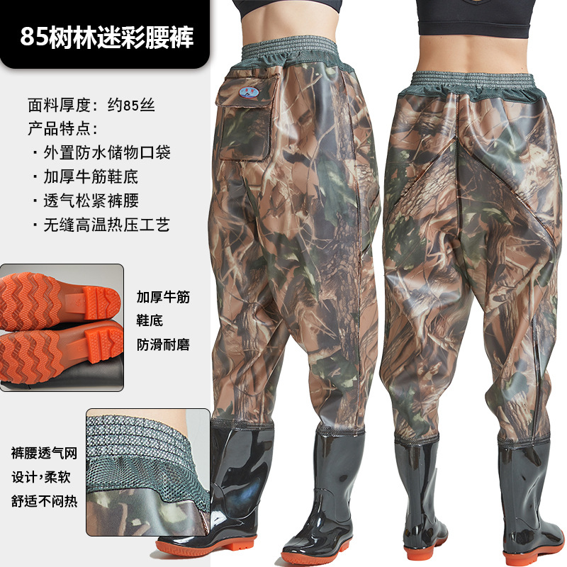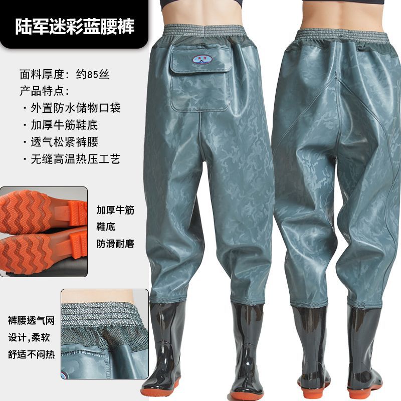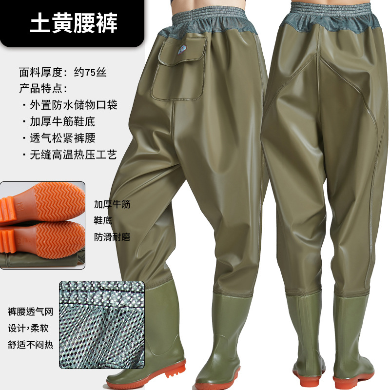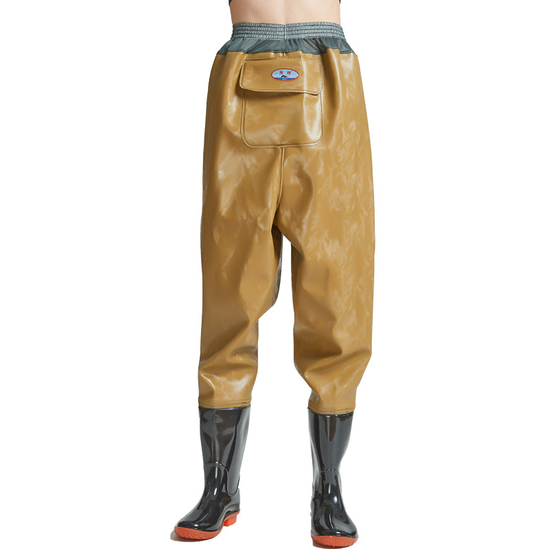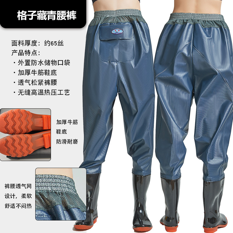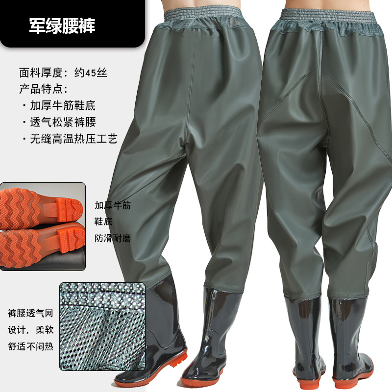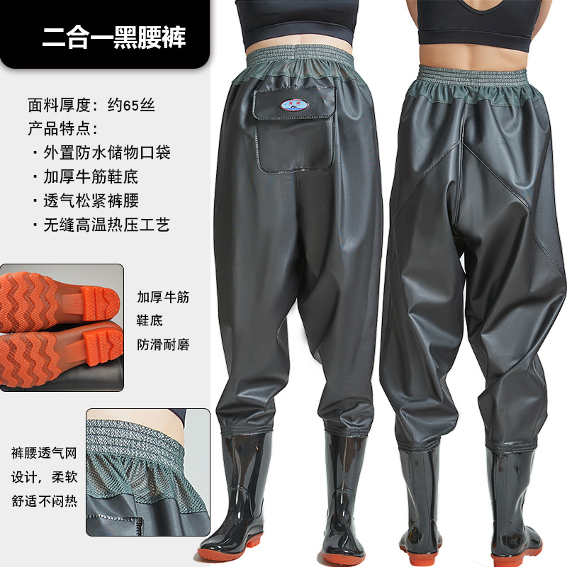 Рыболовные брюки Haixiang из трикотажной ткани с ПВХ-покрытием, до талии, с полуботинками для рыбалки, износостойкие и утолщенные.