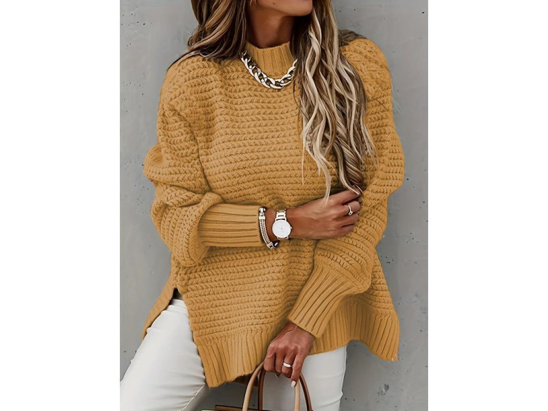 Новый женский свитер крупной вязки с высоким воротом, свободного кроя, однотонный, с длинными рукавами и боковыми разрезами, коллекция Осень/Зима 2026, для трансграничной торговли на Amazon