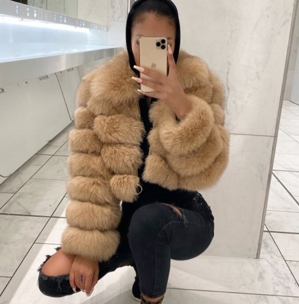 Трансграничная Европа и США новые производители шуба имитация лисьего меха женский мех лацкан шить с длинным рукавом в наличии оптом