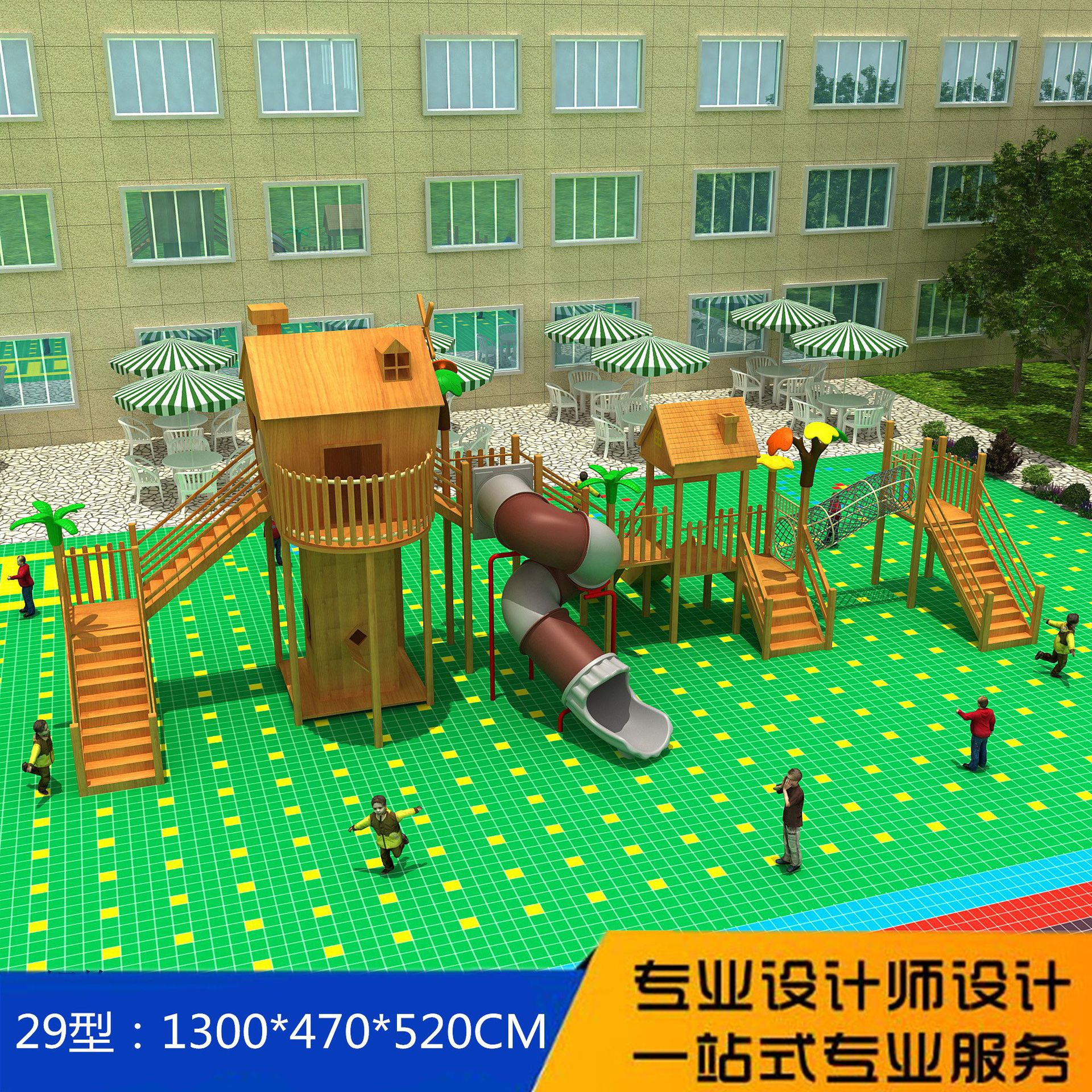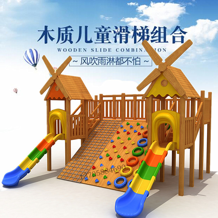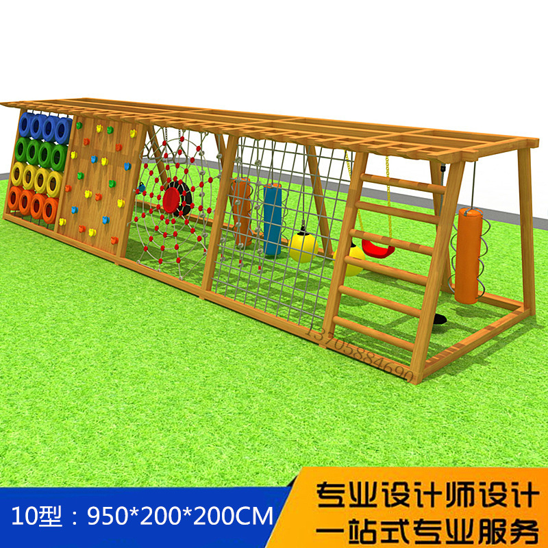 Деревянный игровой комплекс для лазания, качели-мост, горка, уличный большой сенсорный комплекс для лазания на шинах, многофункциональный, без привода.