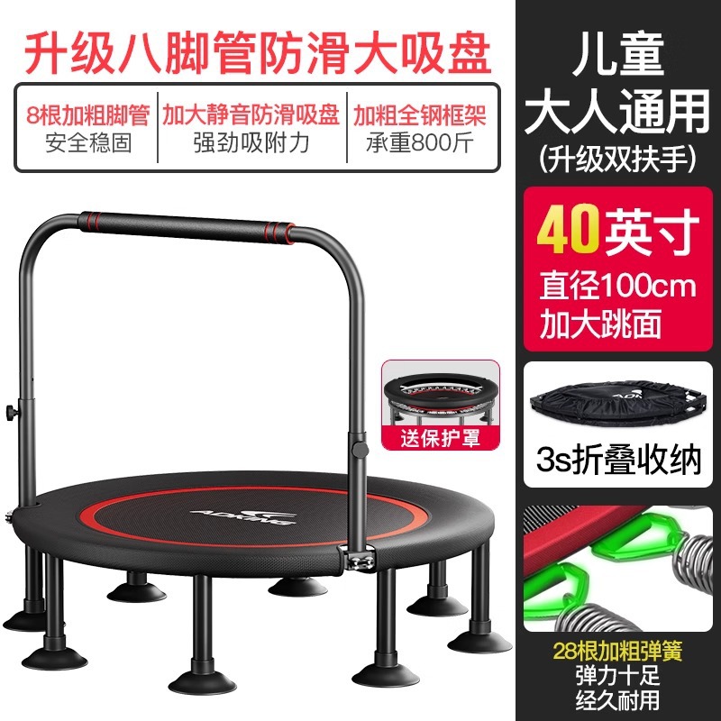 40寸+扶手弹跳直径:74cm 蹦床高度:25CM 总直径:100cm 扶手高度:70cm-90cm