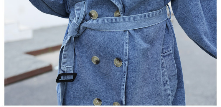 Настоящий выстрел, свободный двубортный джинсовый Тренч больших размеров с длинным поясом, Женский 19212
