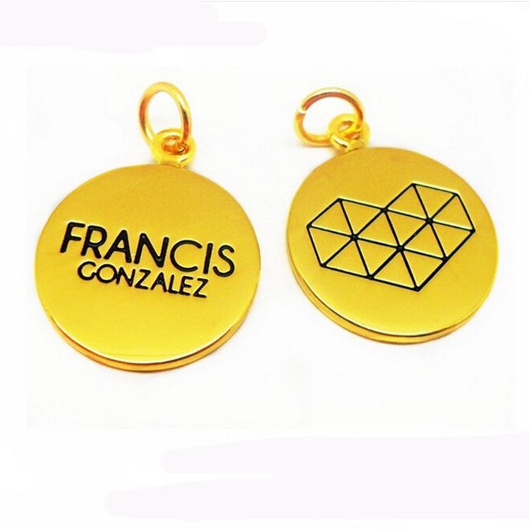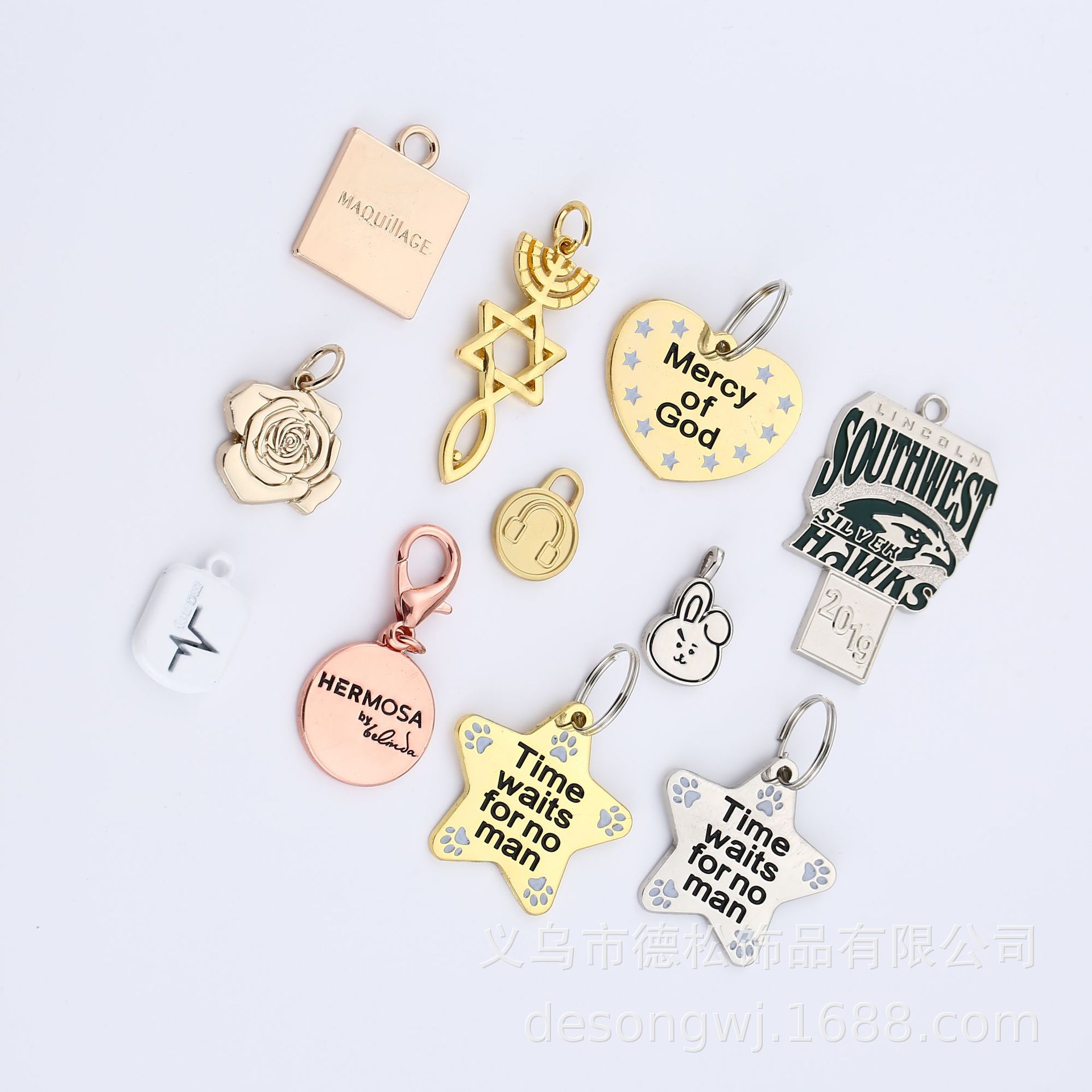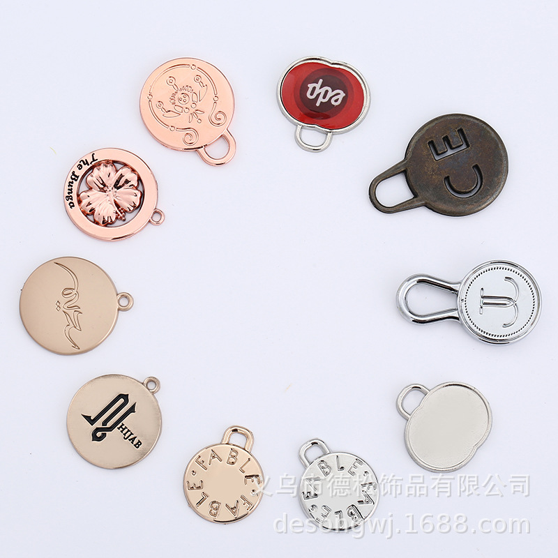 义乌生产金属铜片吊牌电镀金色logo打孔商标可定五金logo合金挂坠