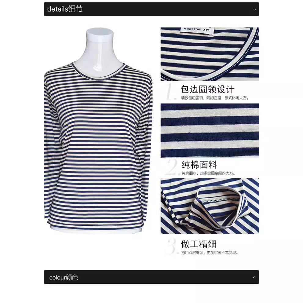Поколение пожилых женщин весенняя одежда футболка с длинными рукавами футболка воротник хлопок свободный старик в полоску