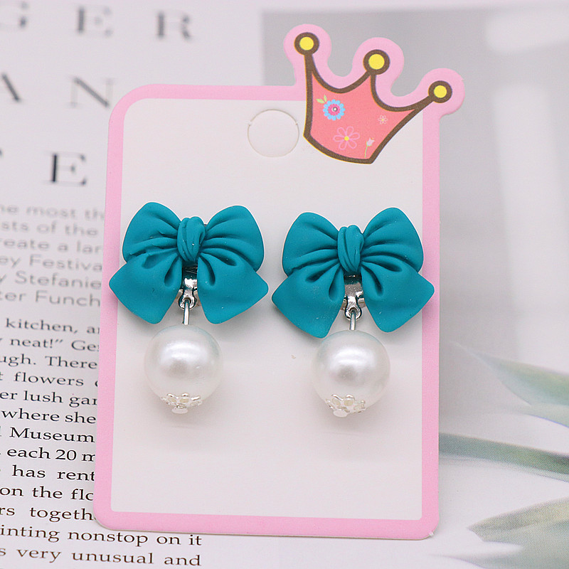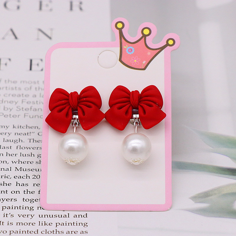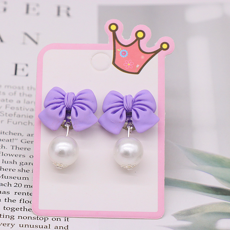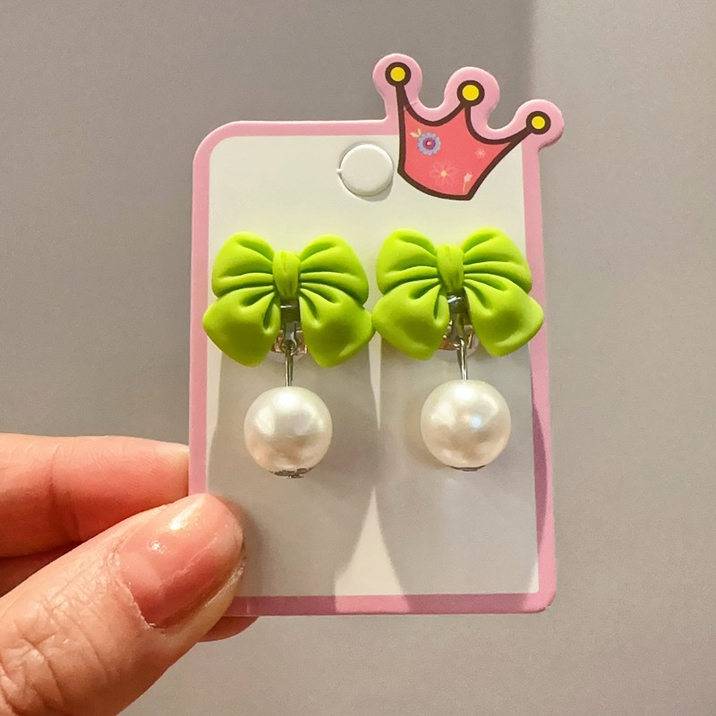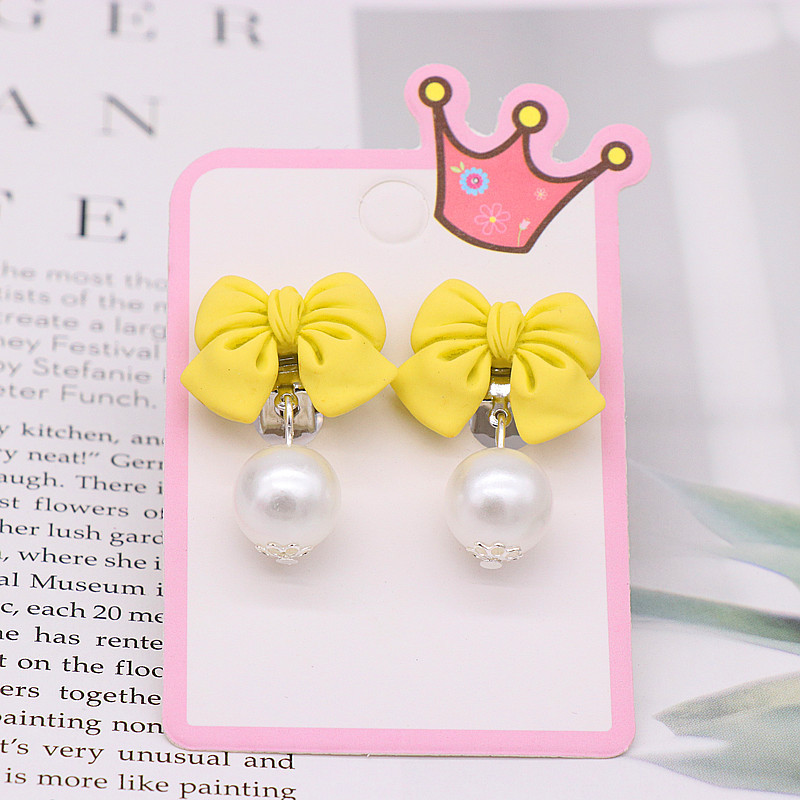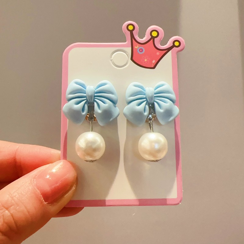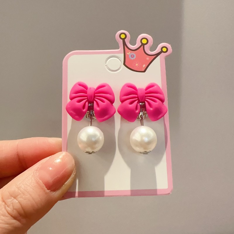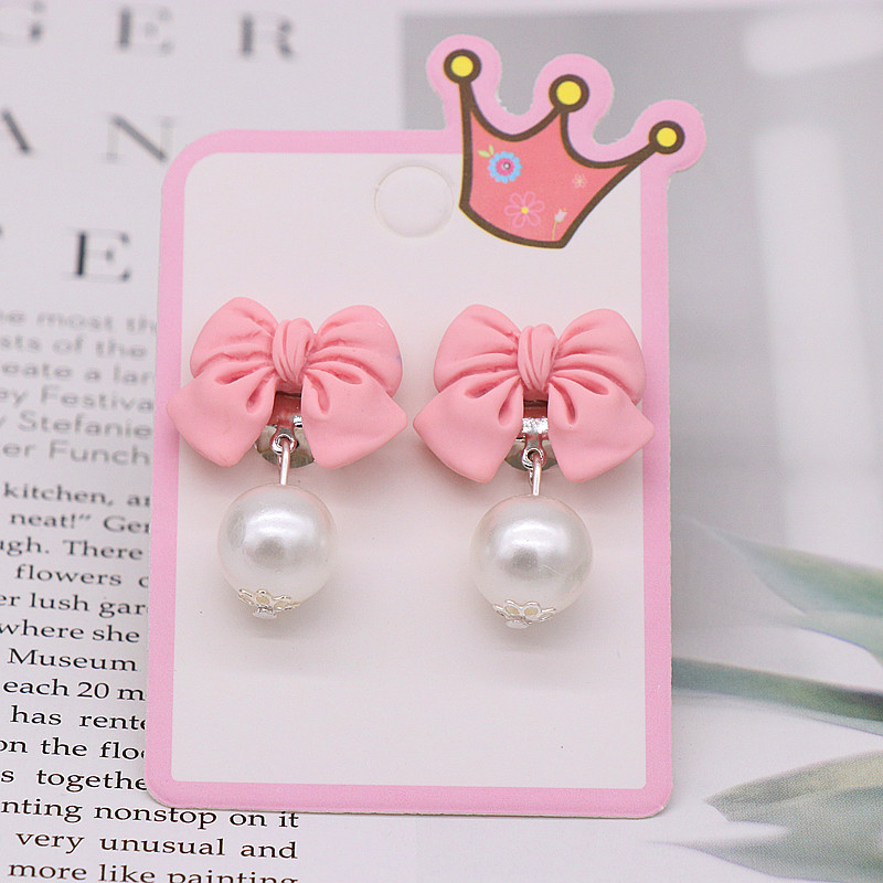 Детские зажимы для ушей без отверстий для ушей, поддельные серьги, милые серьги-банты, ювелирные изделия для маленьких девочек и девочек, висячие серьги-бусины