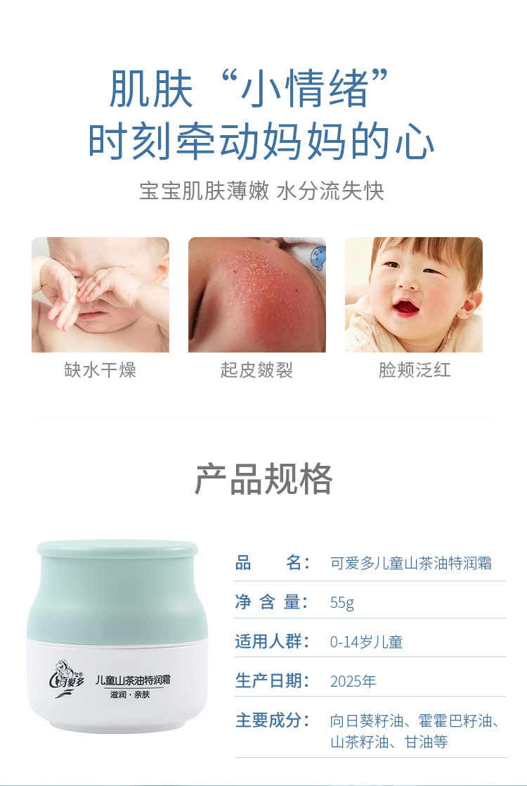 Детский крем для лица Cute More, 55 г, с маслом камелии, увлажняющий крем для детей на осень и зиму, оптом