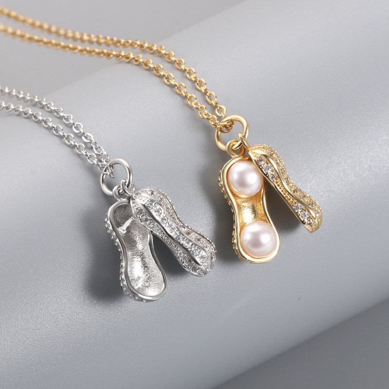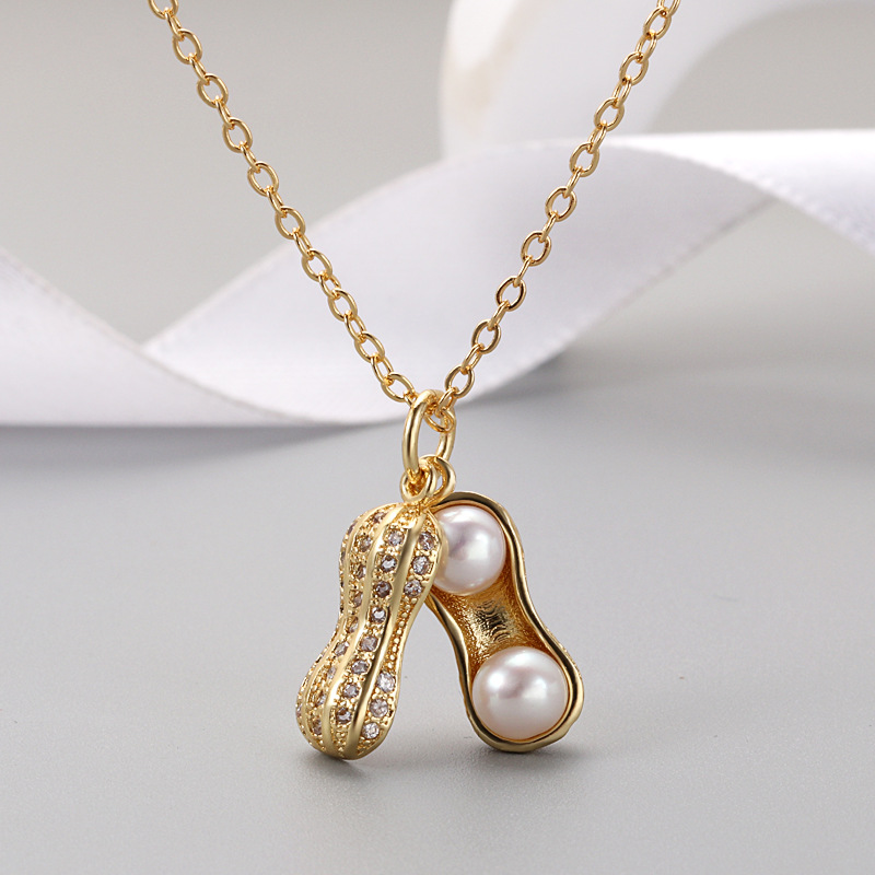 Подвеска в форме арахиса с натуральным пресноводным жемчугом, простое и стильное ожерелье для женщин, готовая заготовка для инкрустации, оптовая продажа и дропшиппинг.