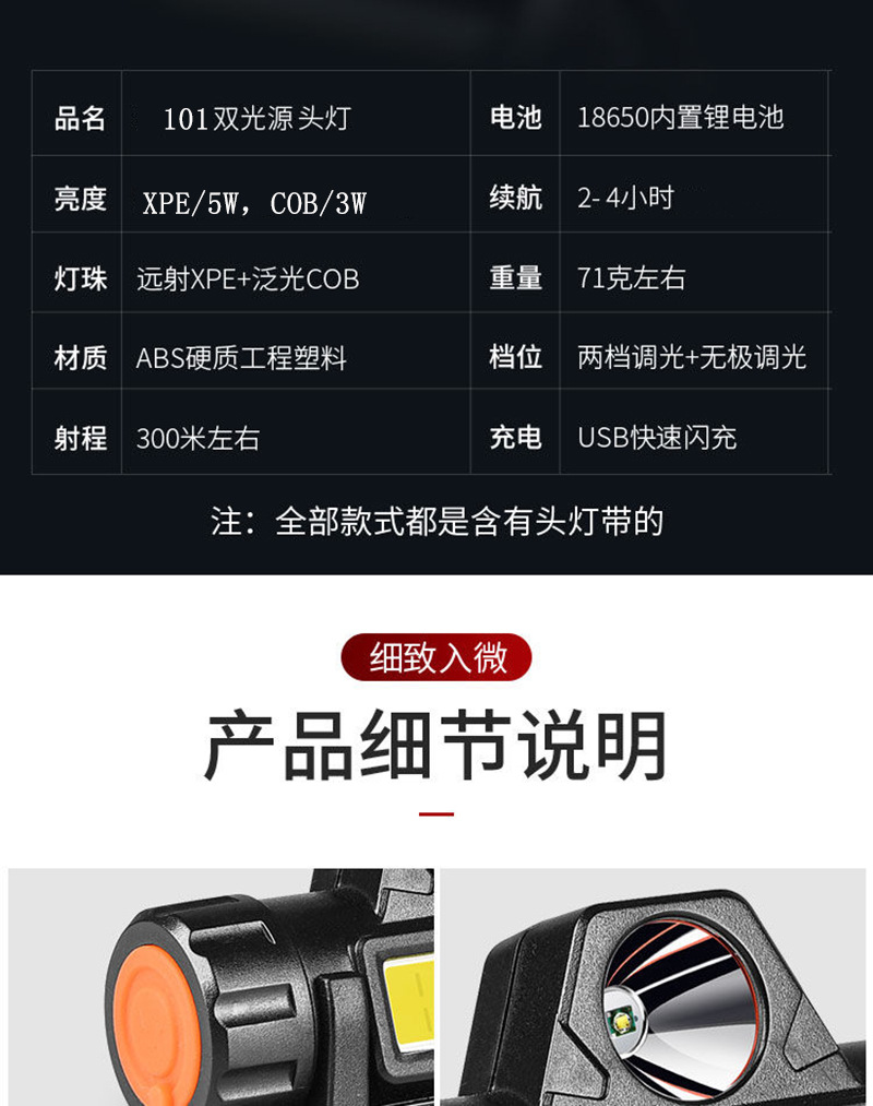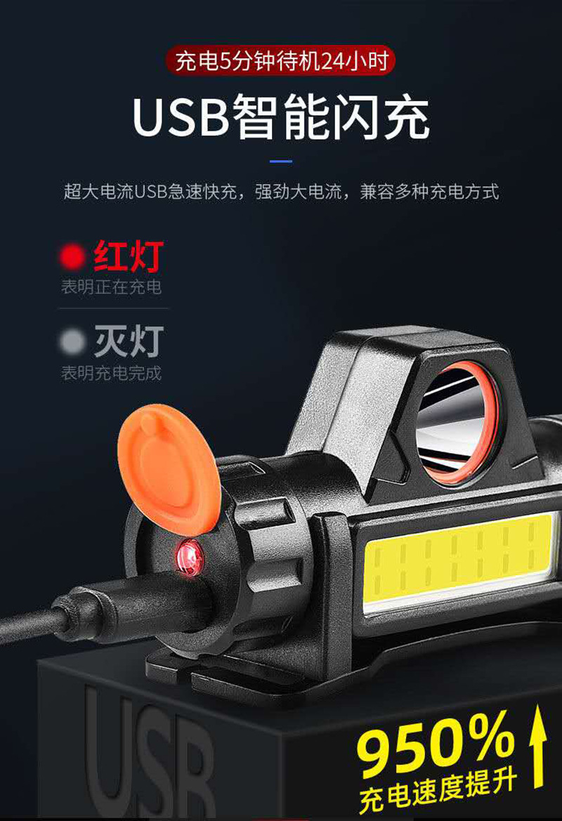 [Модель 101] Емкость 800 119G Встроенная аккумуляторная фара + USB-кабель