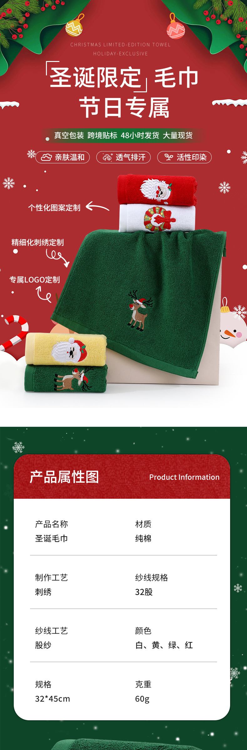 Полотенца фабрика оптом рождественские подарки полотенце хлопчатобумажная вышивка праздничная реклама полотенце полотенце с логотипом на заказ