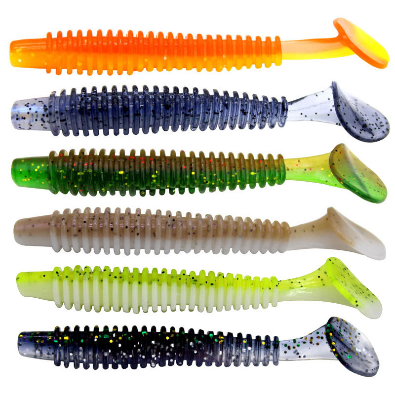 Luya Soft Bait Thread двухцветный T-образный хвост мягкий червячный винт поддельная приманка Заводская приманка оптом Luya Bait рыболовные снасти Weihai