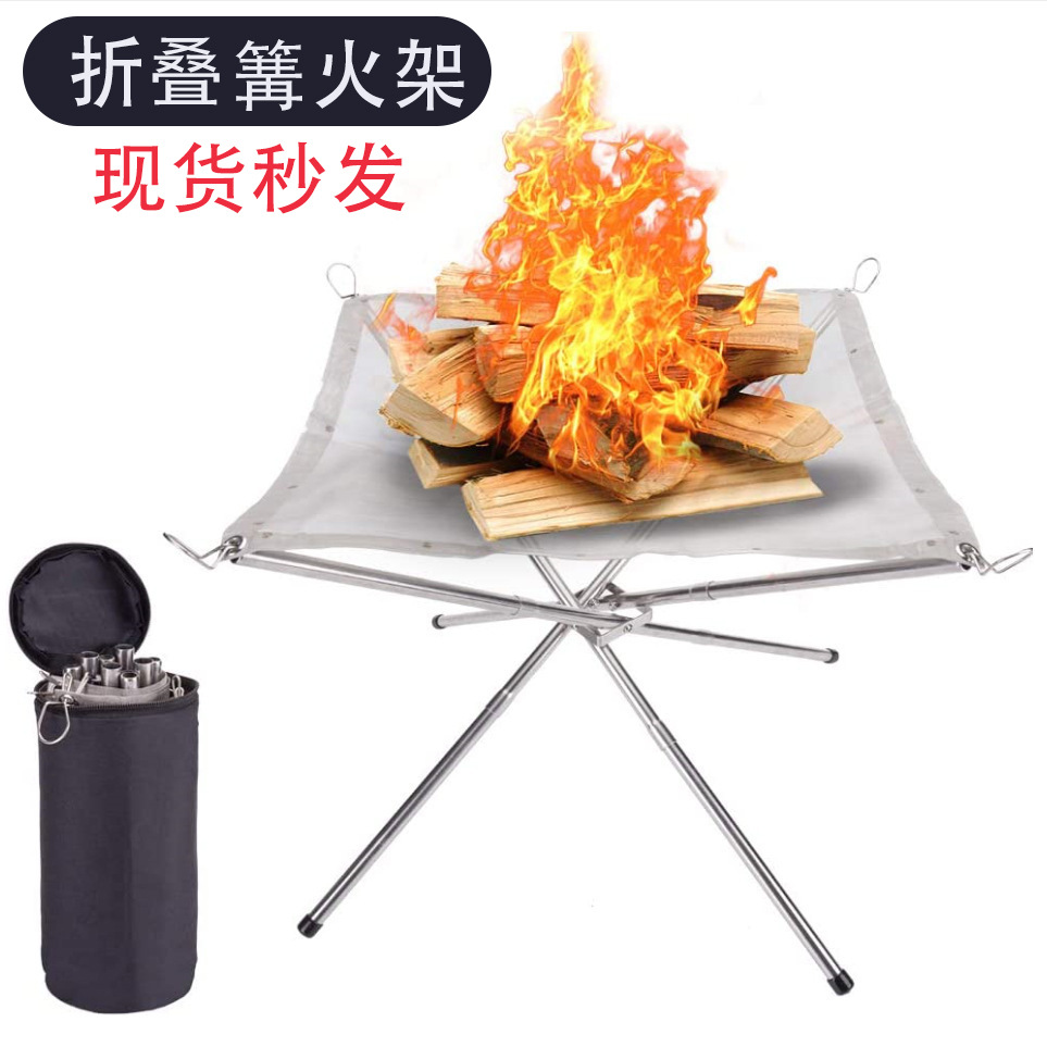 Открытый костер из нержавеющей стали стеллаж для сжигания портативный складной кронштейн для дров Кемпинг сетка для барбекю НЕОБРАБОТАННАЯ углеродистая отопительная плита