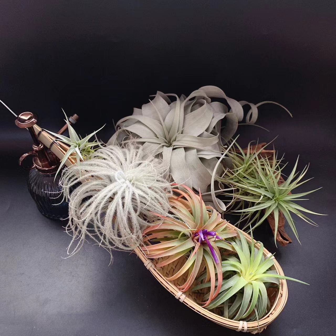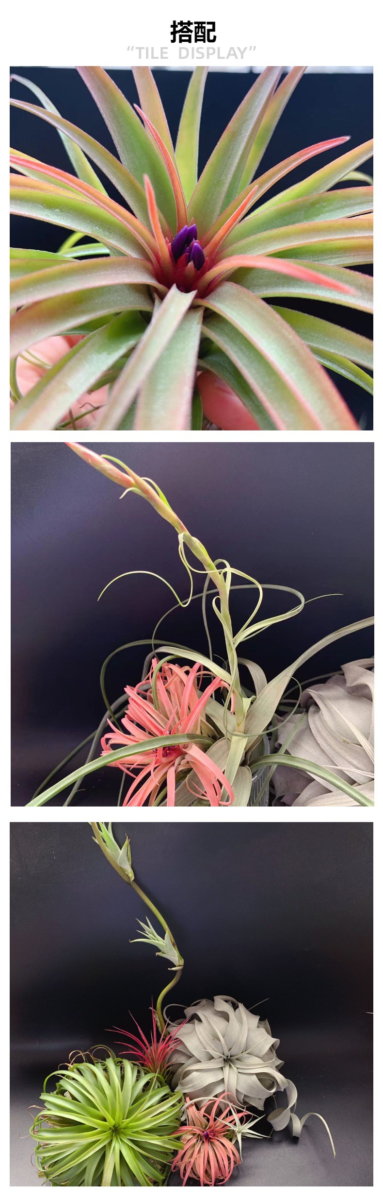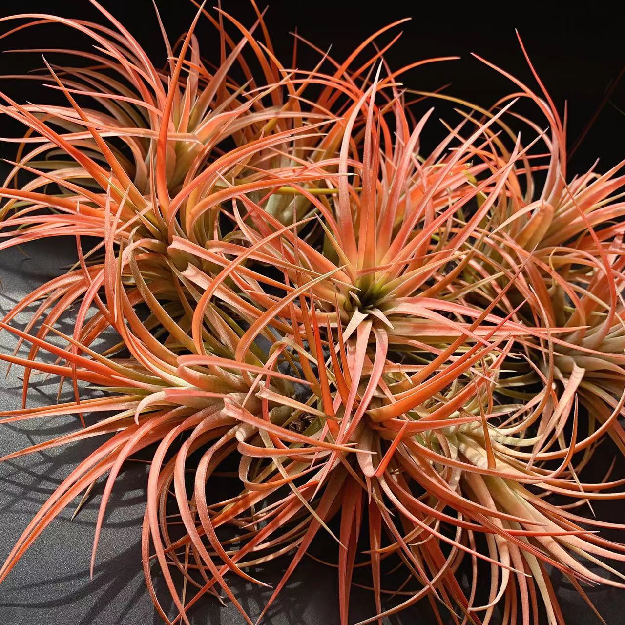 初春深秋大温差和充足的光照之下,容易发色,发色整株橘粉色,一簇紫色吸管状花朵非常艳丽。