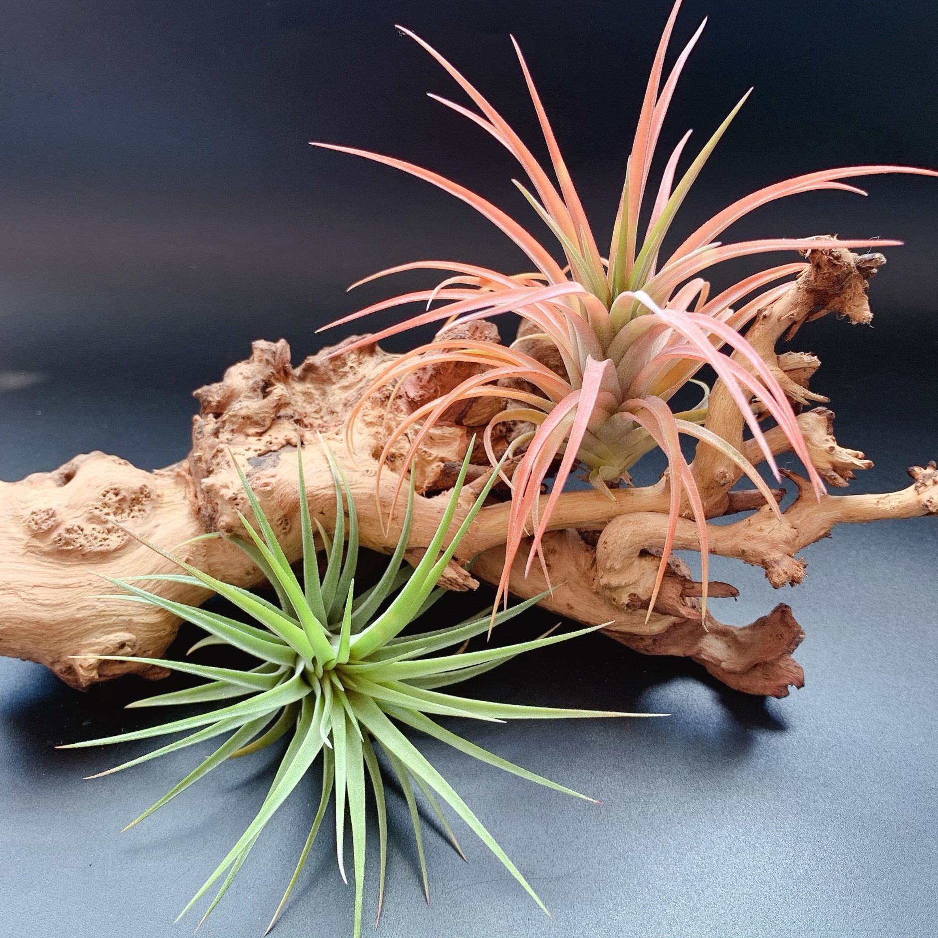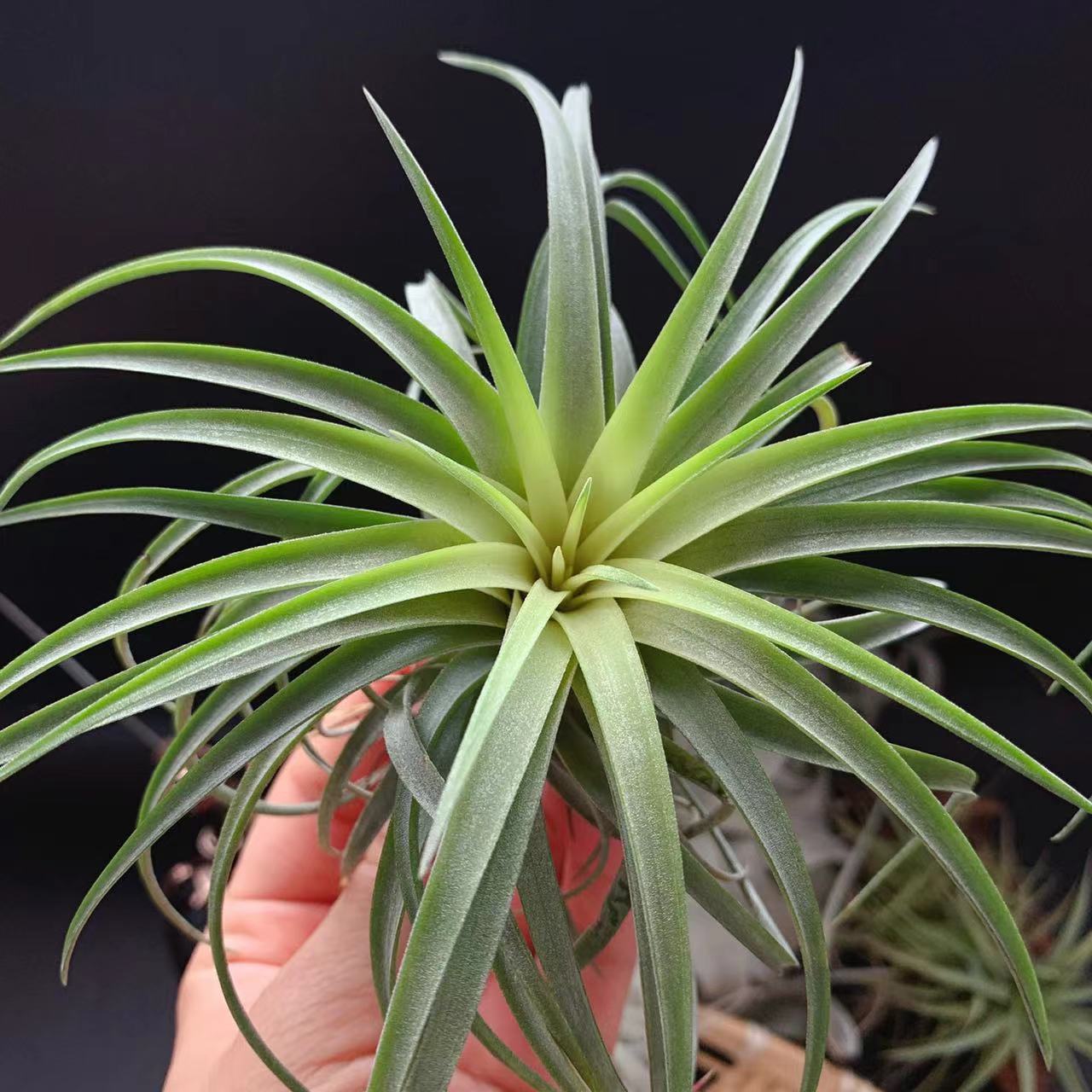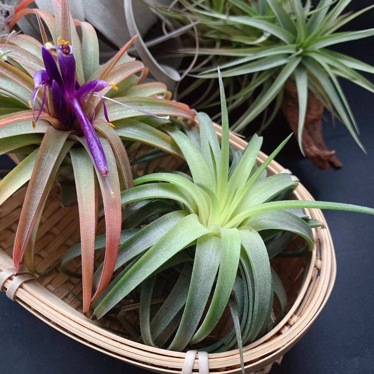 初春深秋大温差和充足的光照之下,容易发色,发色整株橘粉色,一簇紫色吸管状花朵非常艳丽。
