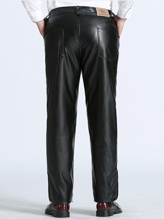 Мужские кожаные брюки, мужские повседневные кожаные хлопковые брюки больших размеров из Хайнинга, мотоциклетные зимние Утепленные теплые брюки на флисовой подкладке
