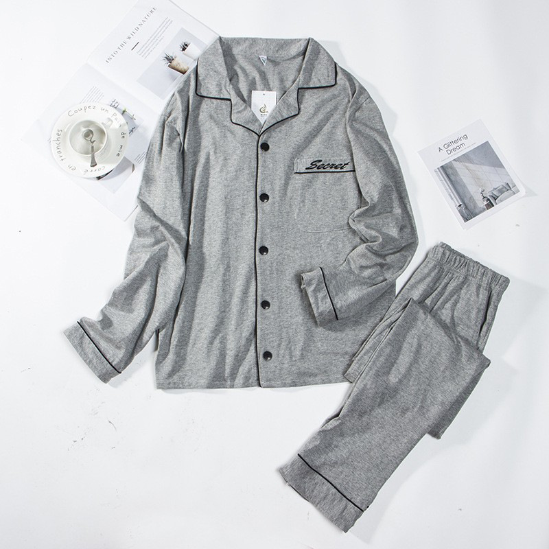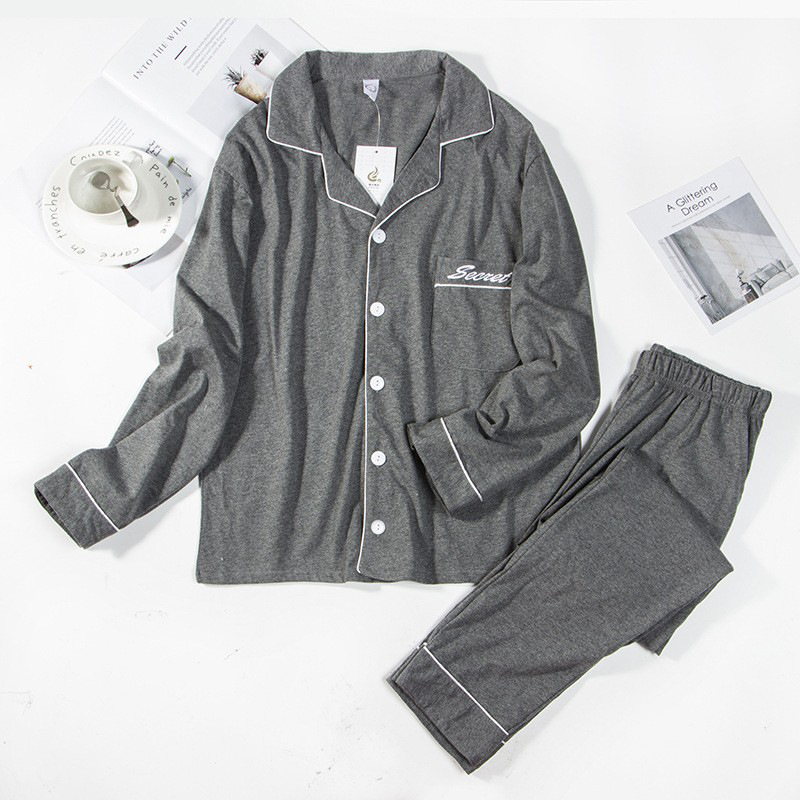 Пижама мужская хлопковая молодежная с длинным рукавом костюм весна и осень толстяк очень большой размер 250 Джин кардиган домашняя одежда для новобрачных