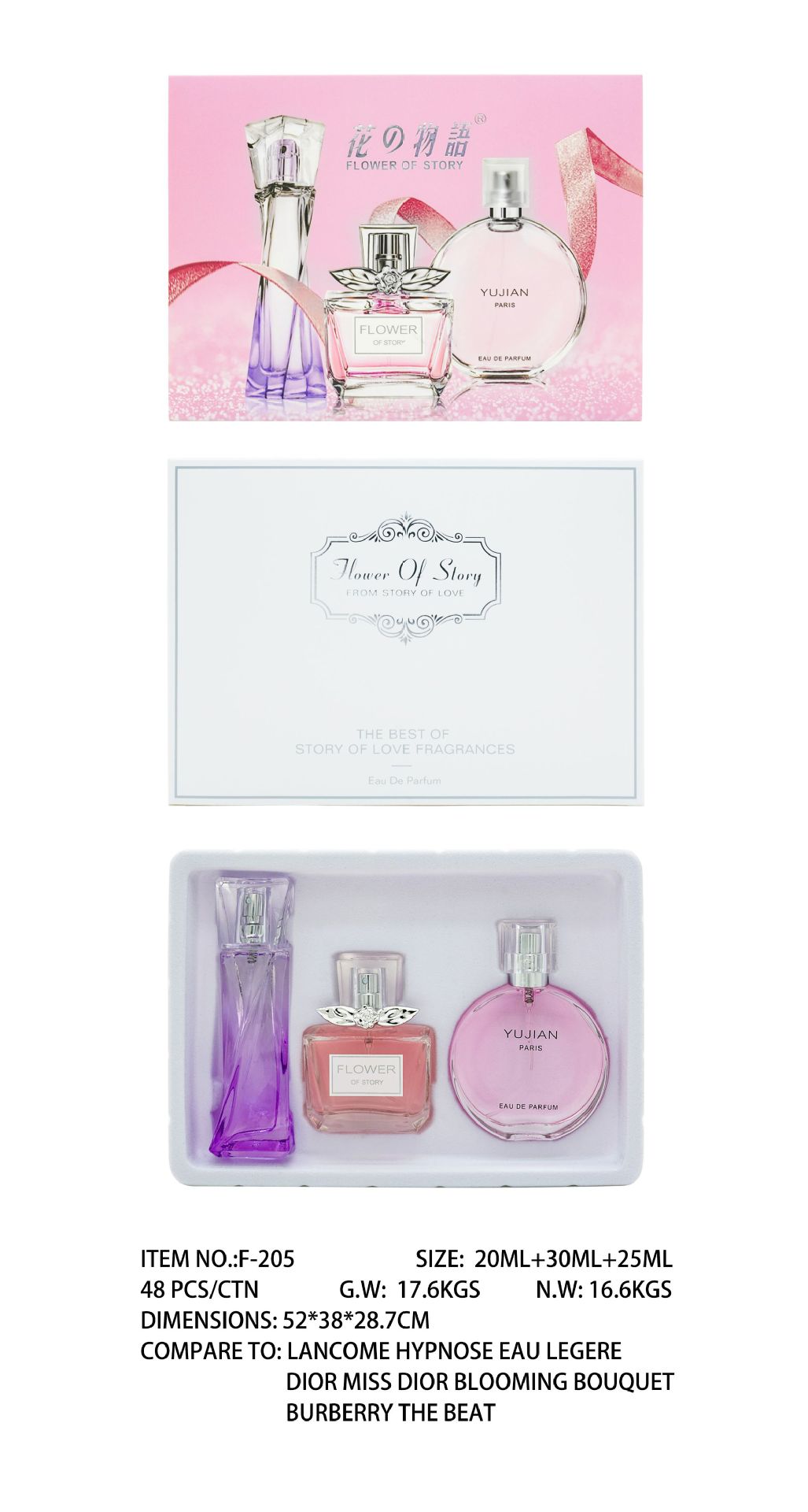 Набор женских духов Flower Story, три флакона по 25 мл, свежий легкий аромат, оптом, роза