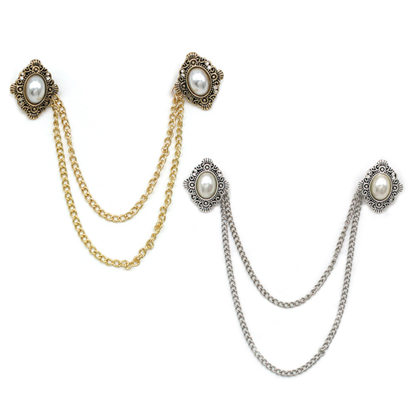 Европейская и американская Высококачественная Мужская брошь в стиле ретро для костюма с цепочкой и жемчужной булавкой, аксессуары для воротника рубашки, прямые продажи с фабрики