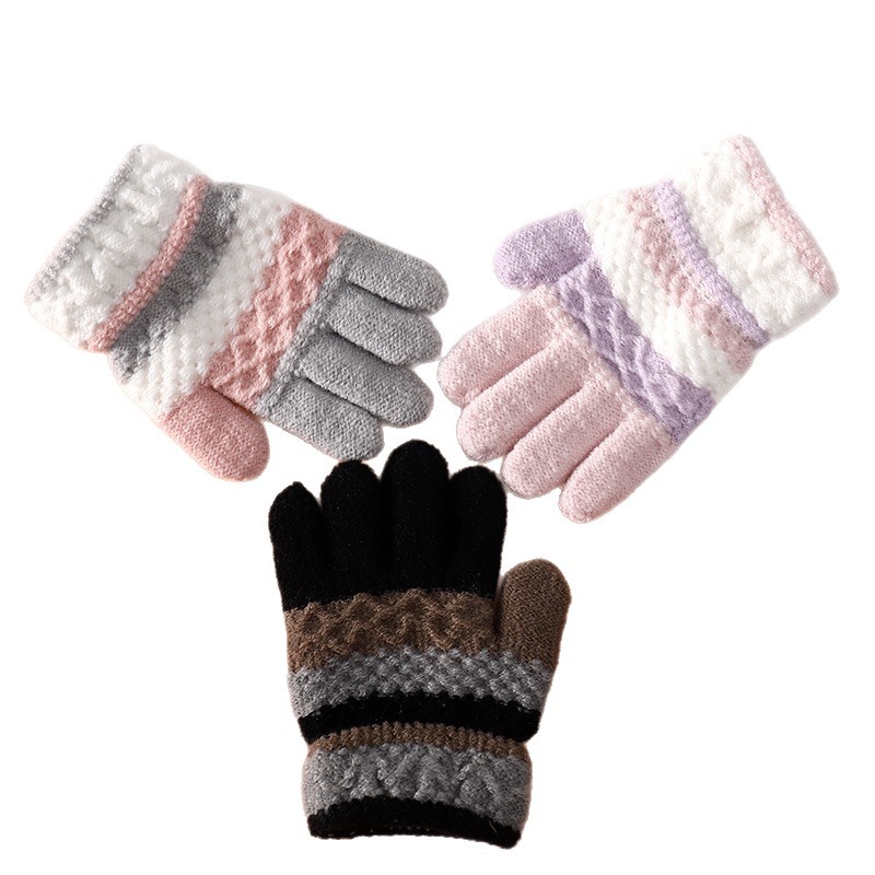 Прямые поставки с фабрики детские перчатки осенне-зимние детские перчатки с милым полосатым пальцем теплые вязаные детские перчатки