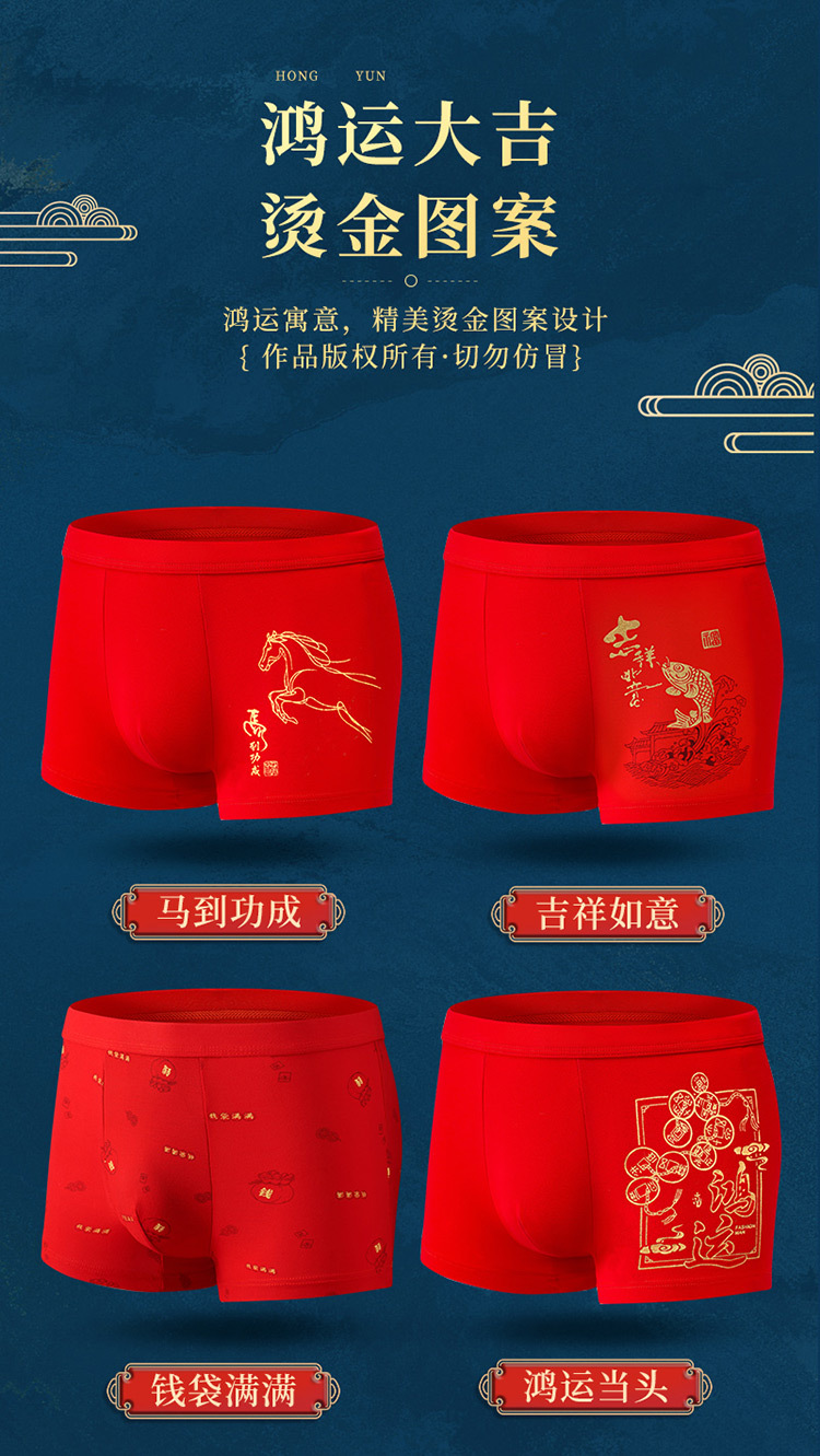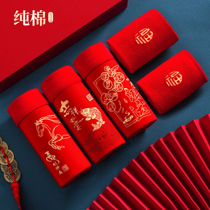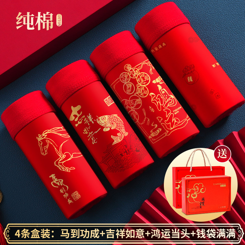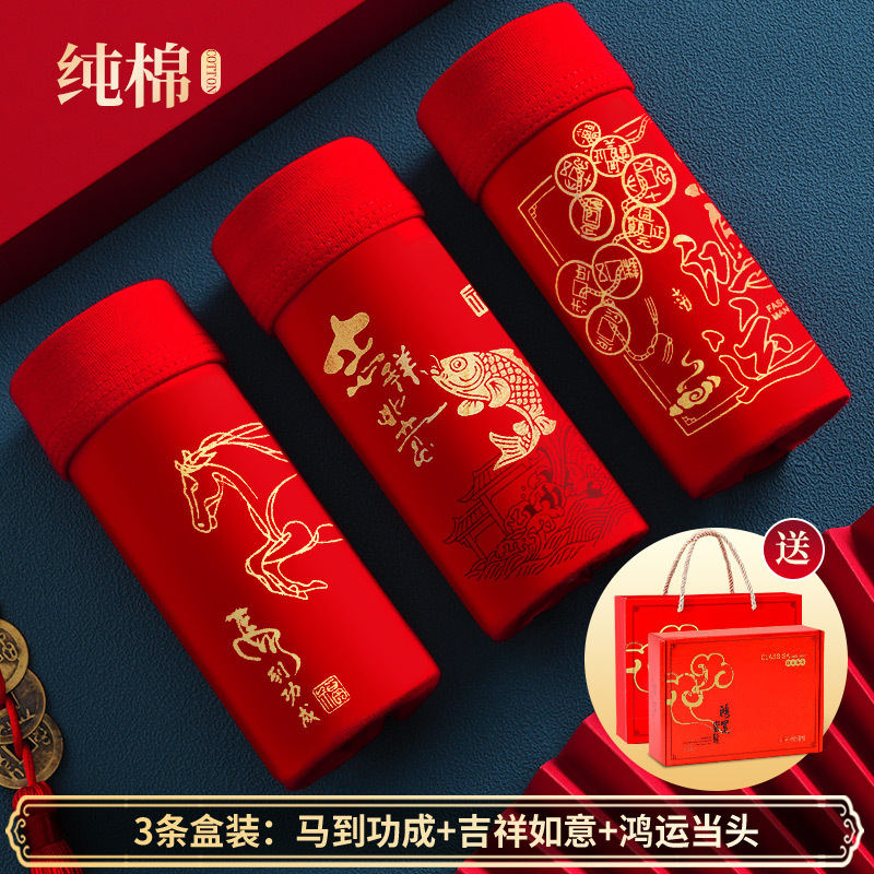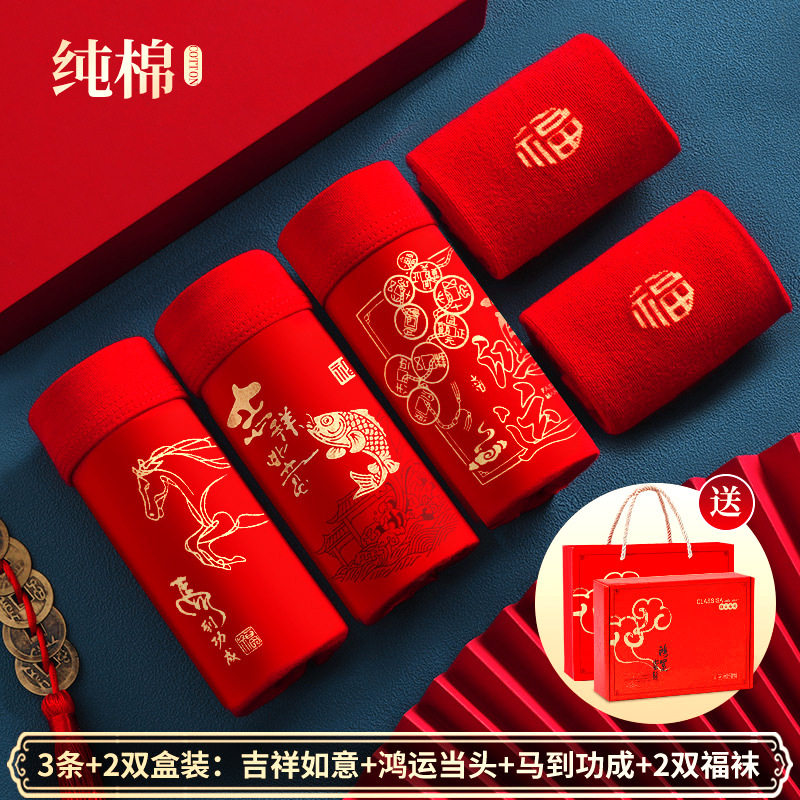 Мужское нижнее белье из чистого хлопка, красные боксеры на год рождения, большой размер, красные трусы-боксеры, свадебный комплект на год Лошади, удача.