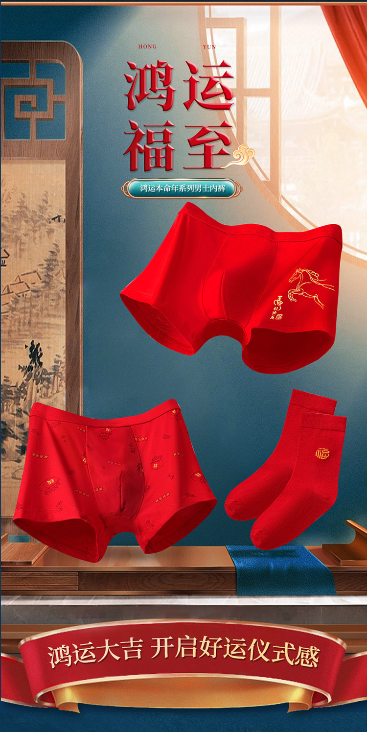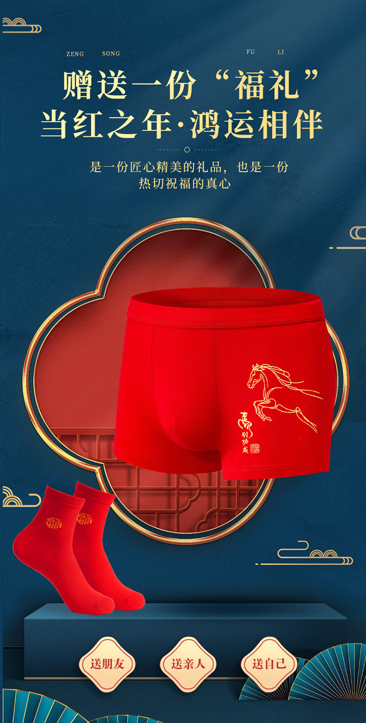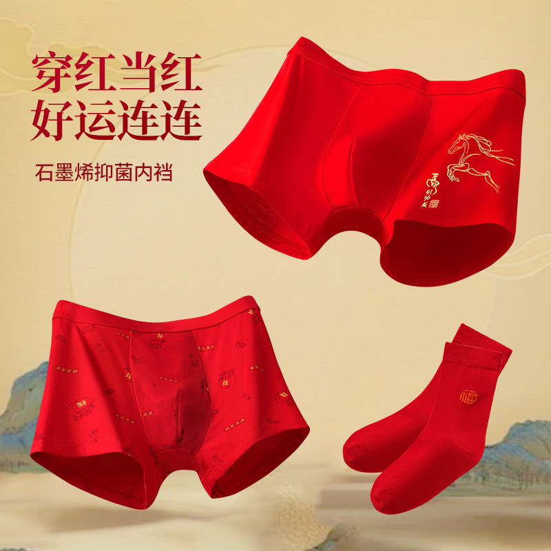 Мужское нижнее белье из чистого хлопка, красные боксеры на год рождения, большой размер, красные трусы-боксеры, свадебный комплект на год Лошади, удача.