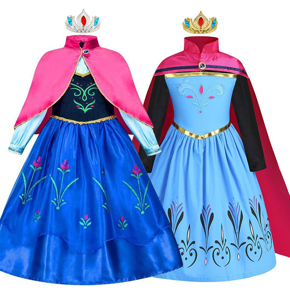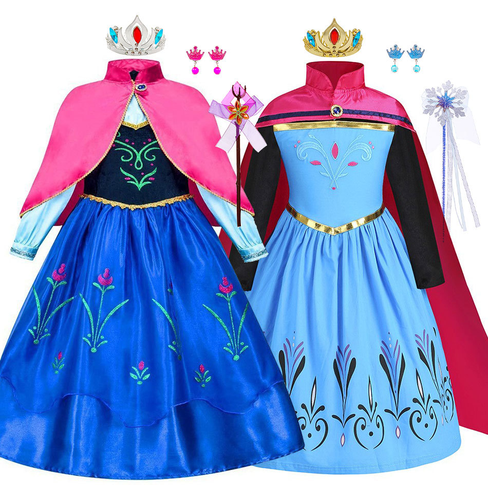 Платье принцессы Эльзы «Зимняя королева», романтический красный плащ, костюм принцессы Анны для косплея, тематический костюм Эльзы для девочек