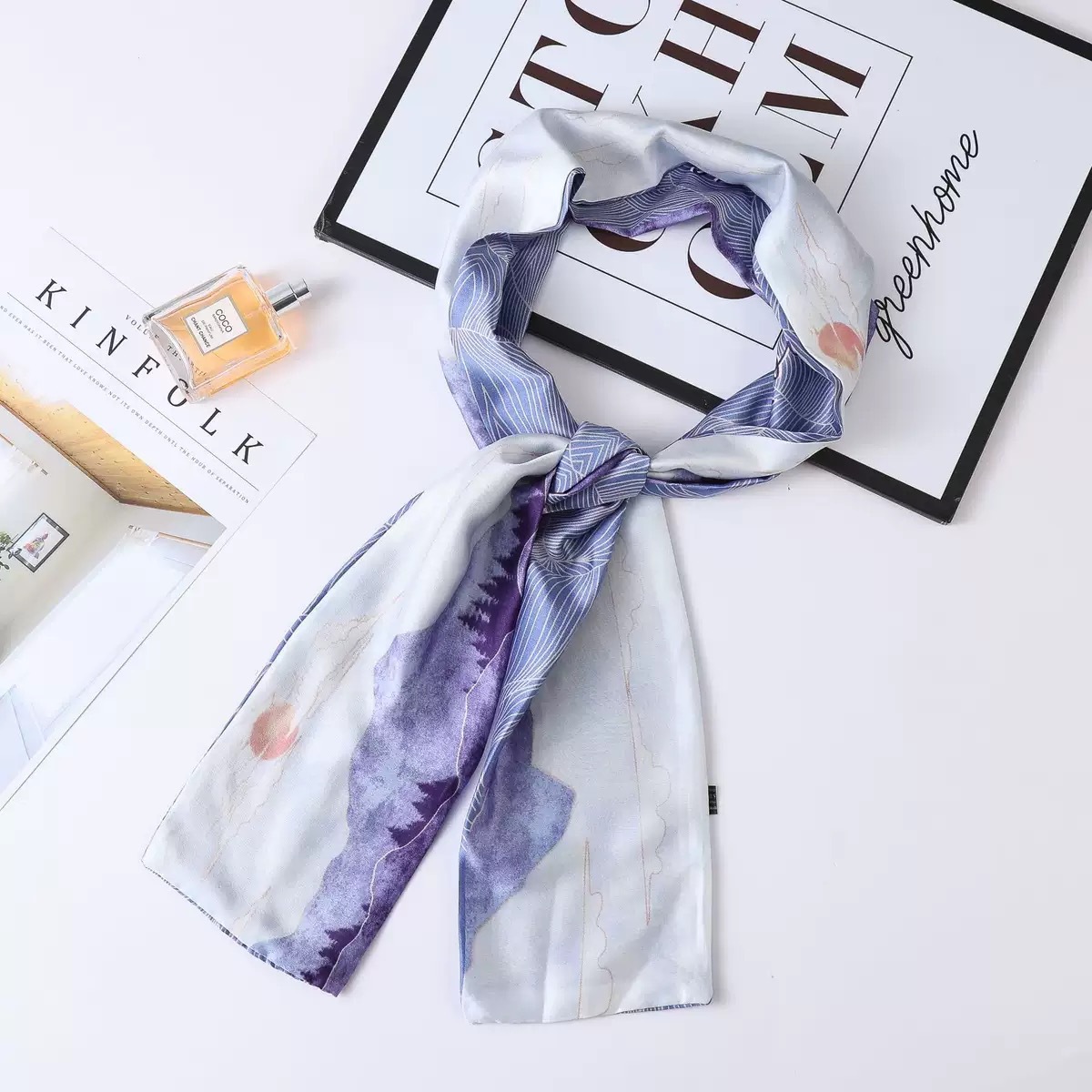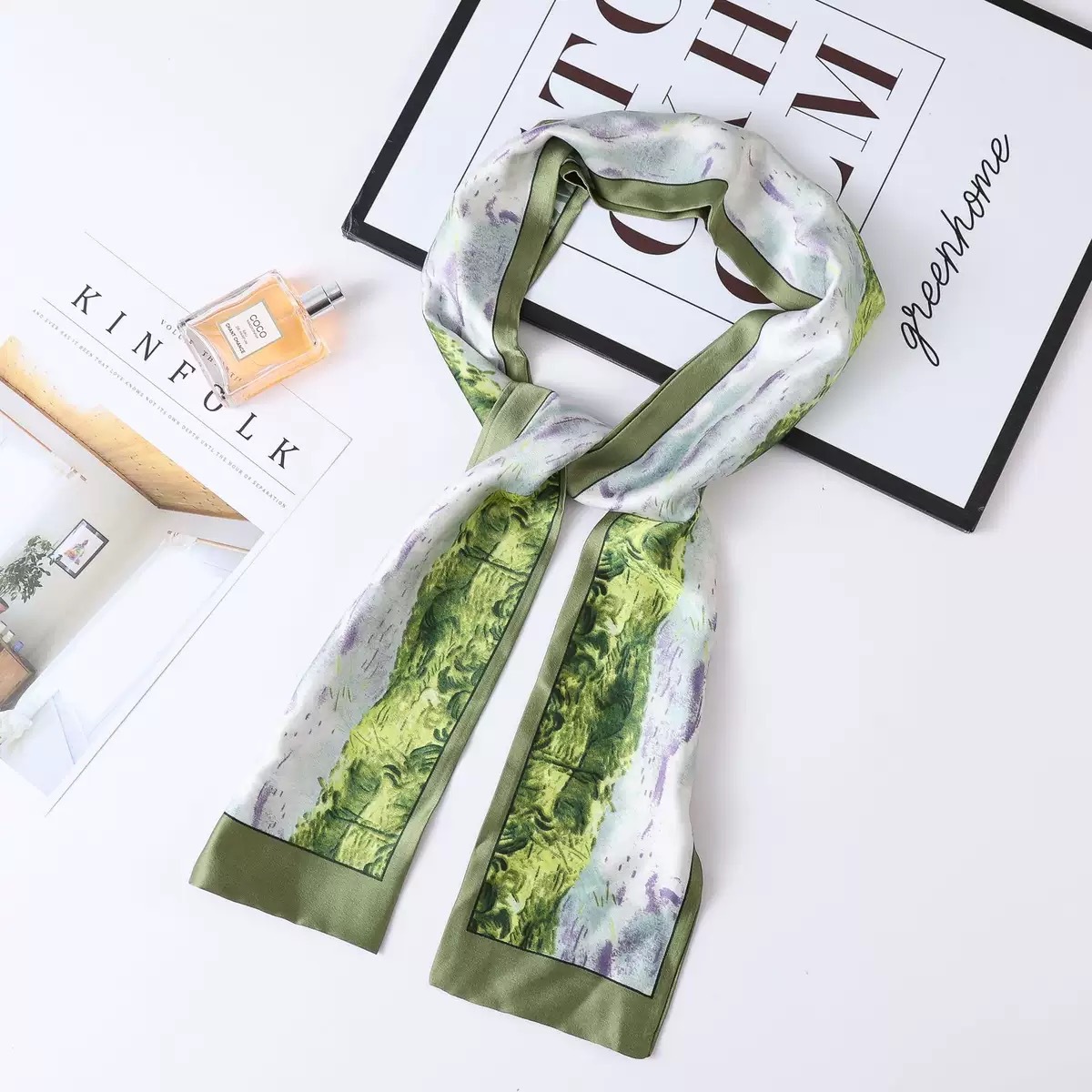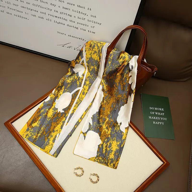 Длинный шарф, завязанный шарф, шелковый шарф Су-Ханг, искусственный шелк, корейская версия, дикий тонкий узкий шарф, длинная полоса высокого чувства оптом