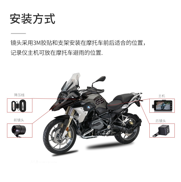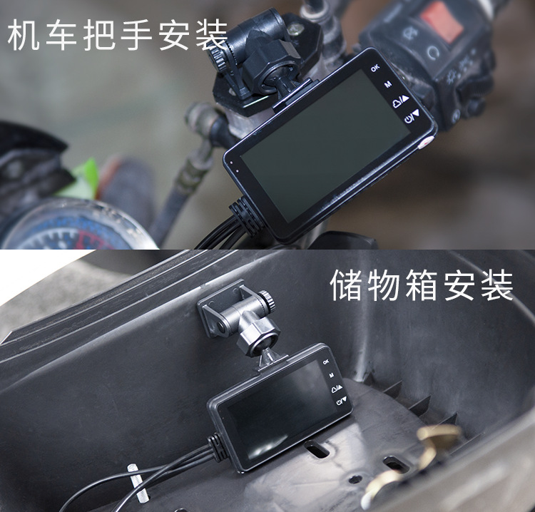 Используйте бортовой источник питания мотоцикла 12 В, запустите автомобиль и автоматически включите и запишите.