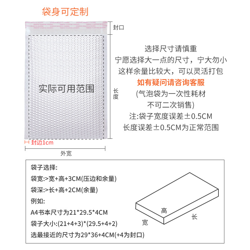 袋子尺寸(外尺寸)长宽会有0.5cm-1cm左右的误差,尺寸尽量买大不买小,介意勿拍。
