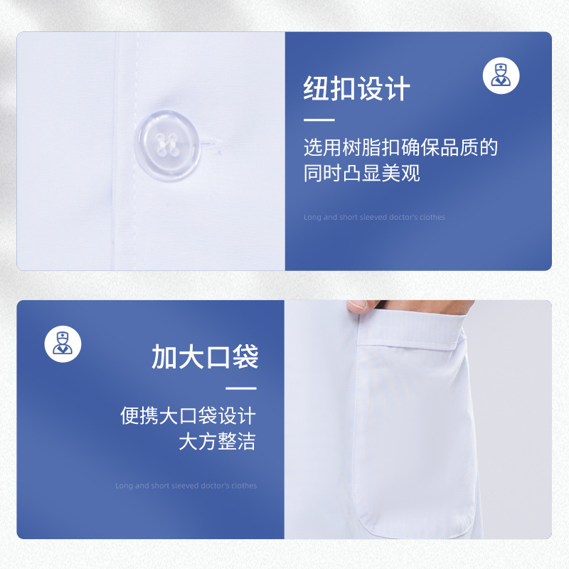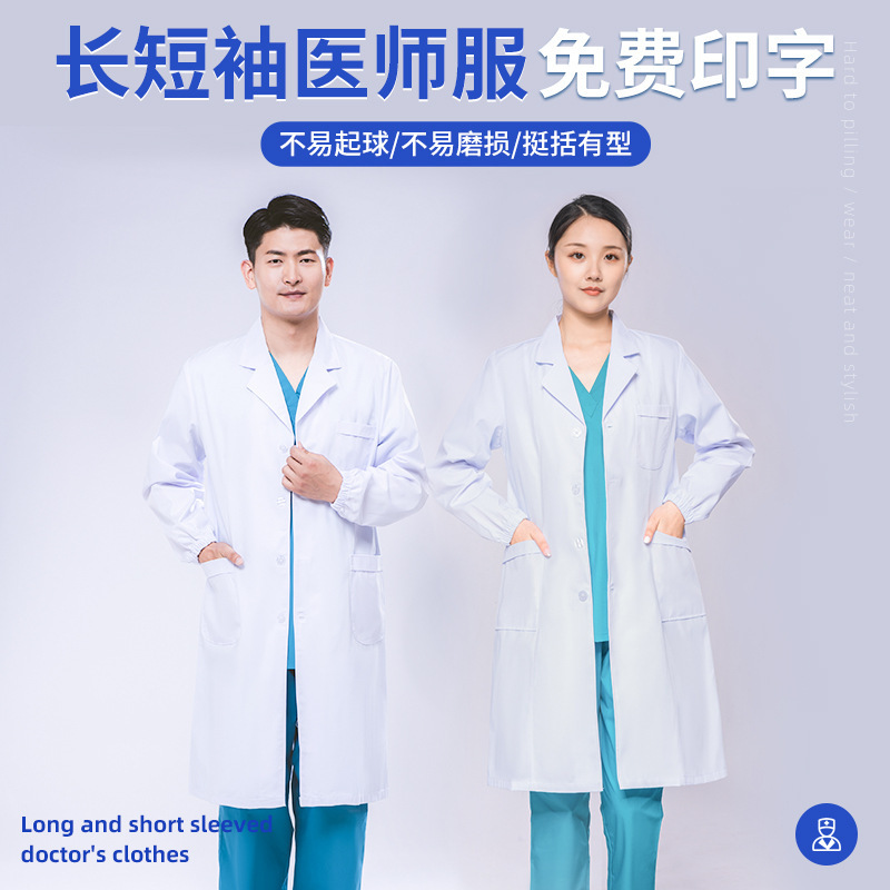 Фабрика в наличии Медицинская одежда для врачей Зимняя и летняя оптовая продажа Больница с длинным и коротким рукавом Аптека Мужчины и женщины Врачи Белые пальто