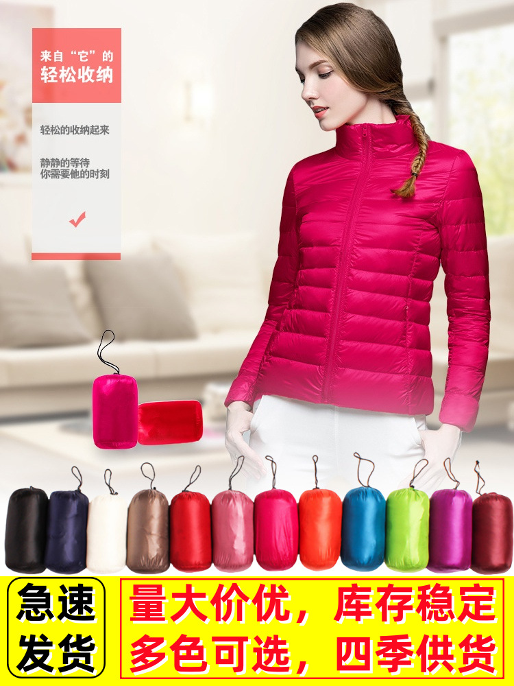 Новая легкая женская куртка-пуховик на осень/зиму 2025 года, с воротником-стойкой, короткая, из белого утиного пуха, для трансграничной торговли на Amazon