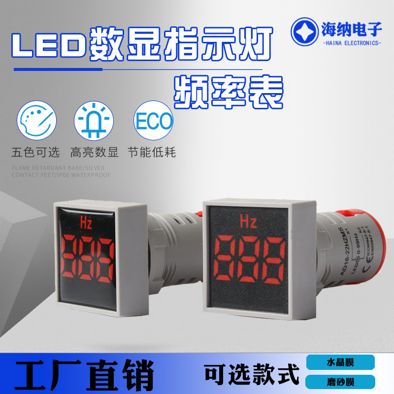 Светодиодный небольшой цифровой дисплей Герц-метра AD16-22HZMS Хрустальный матовый квадрат 0-99 Гц Индикатор частоты переменного тока