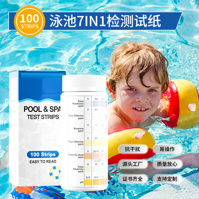 Плавательный бассейн 7-в-1 тестовая бумага PH тестовая бумага остаточная тестовая бумага на хлор плавательный бассейн Amazon Hot Selling 100 тестовая бумага на качество воды