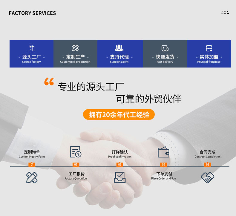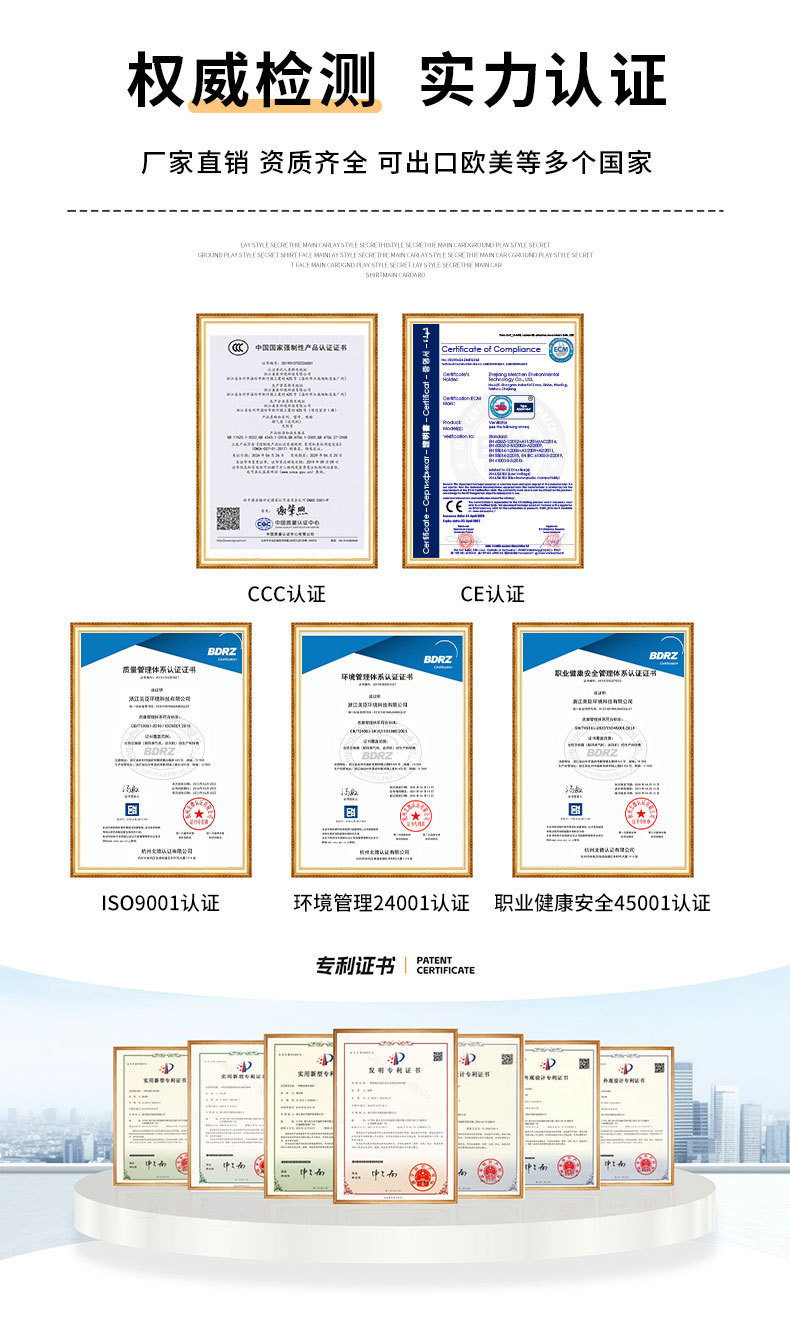 因为我通过 CCC、ISO、CE 等权威认证,所以产品品质符合国际标准,可承接高要求订单