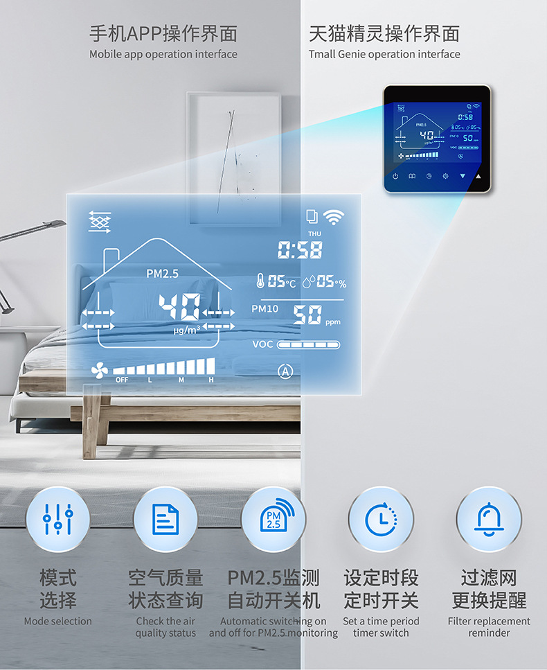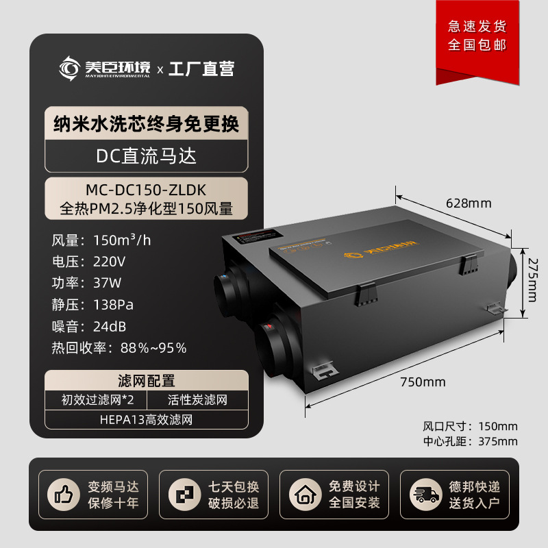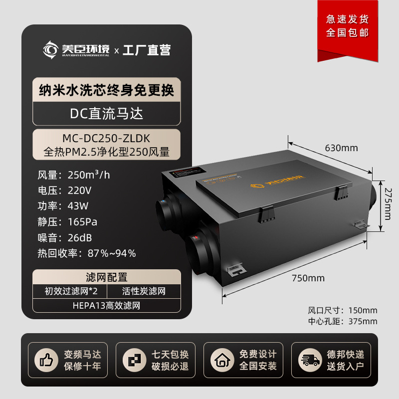 新风系统家用室内空气净化器 新风换气一体机