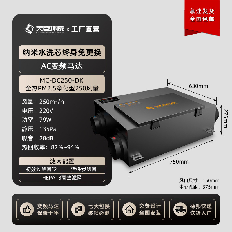 Система приточной вентиляции, бесшумный бытовой вентилятор приточной вентиляции, наружный рекуператор тепла, коммерческий двухсторонний приточно-вытяжной вентилятор для очистки воздуха во всем доме