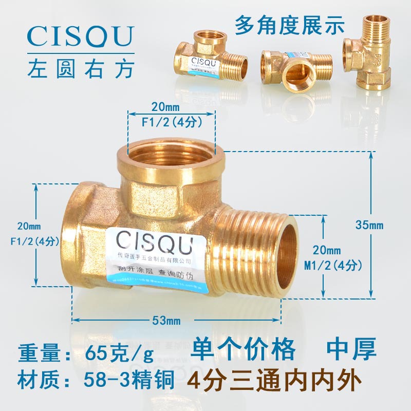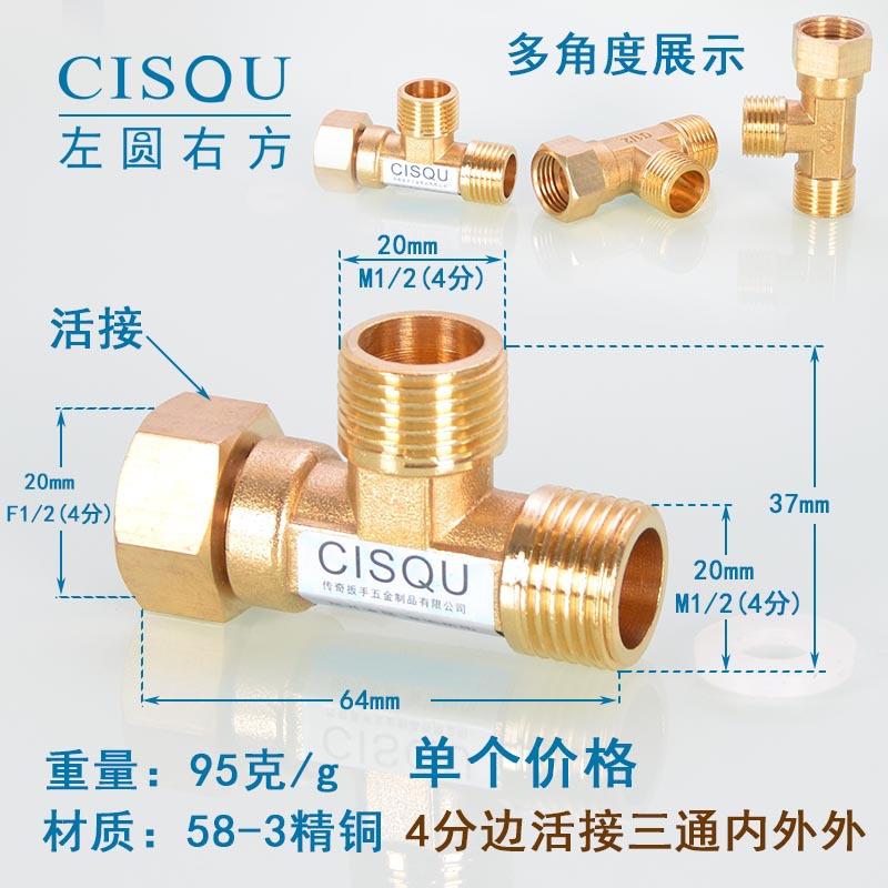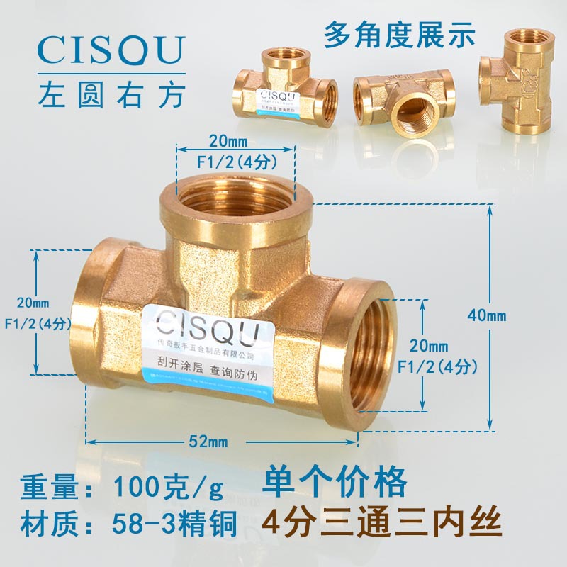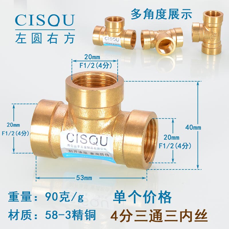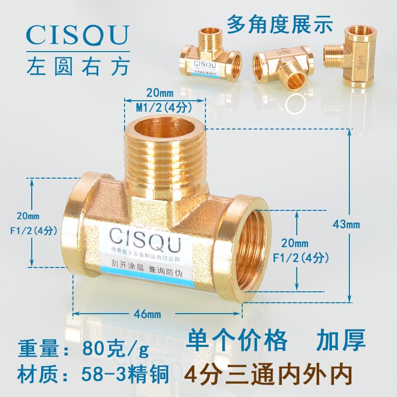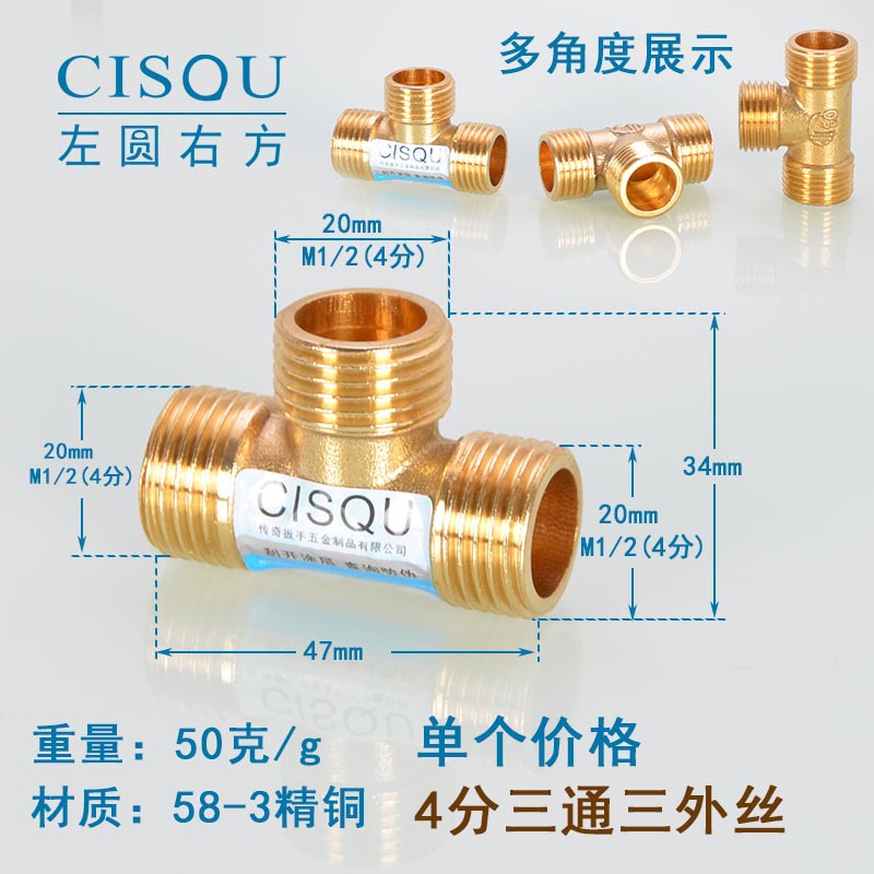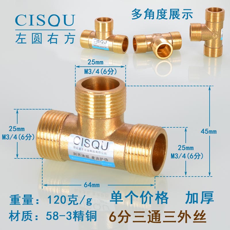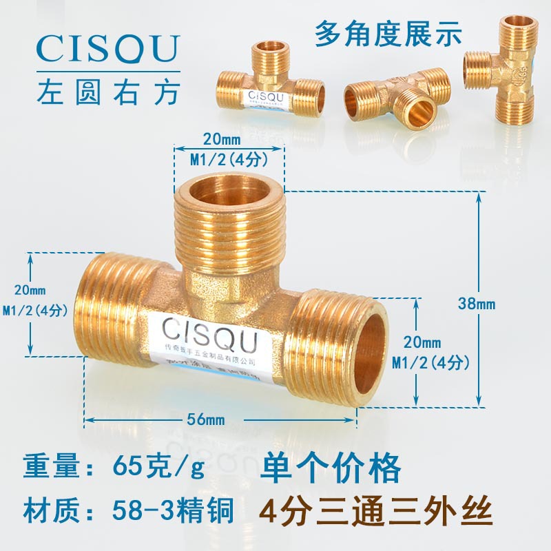 4-точечный утолщенный латунный тройник, три внешних провода, внутренний провод, внешняя внутренняя резьба, газовая труба, водонагреватель, аксессуары для водопроводных труб