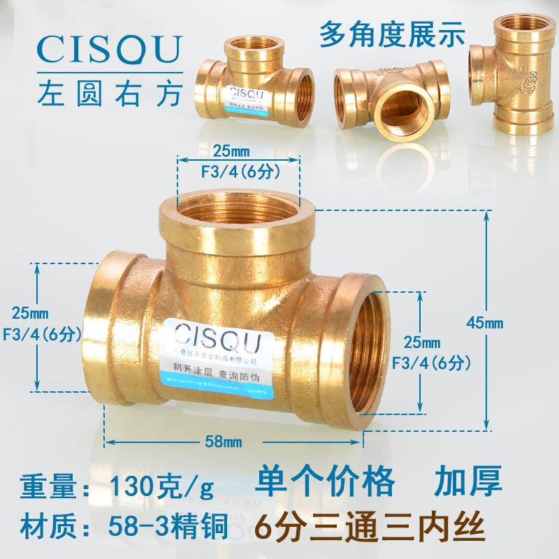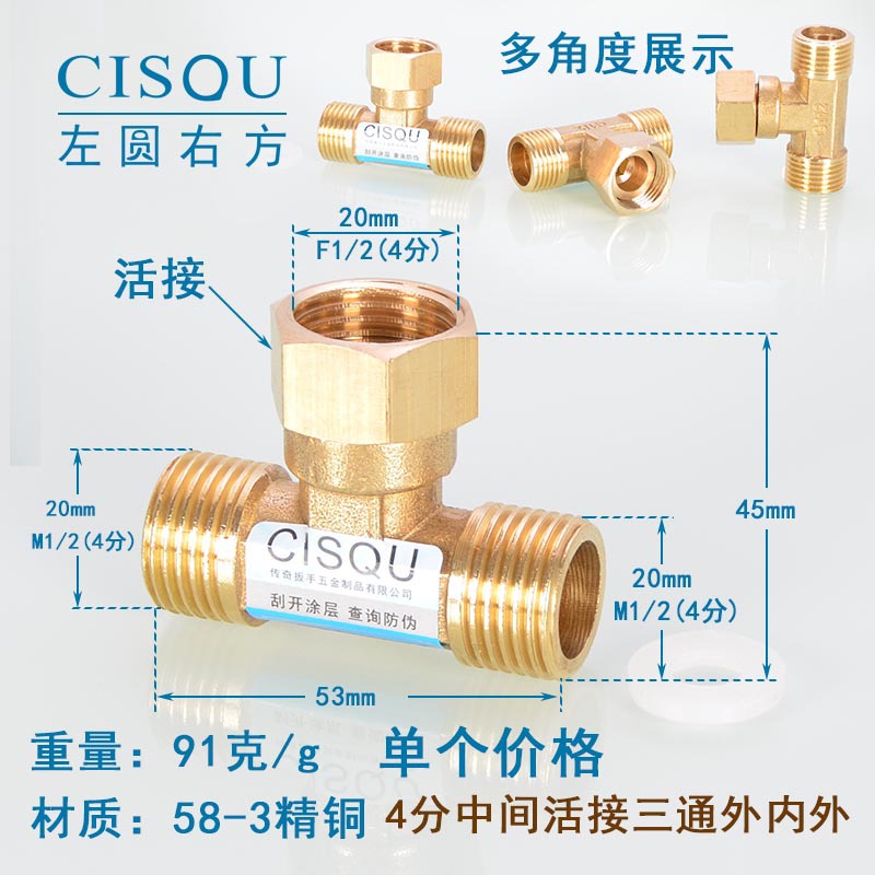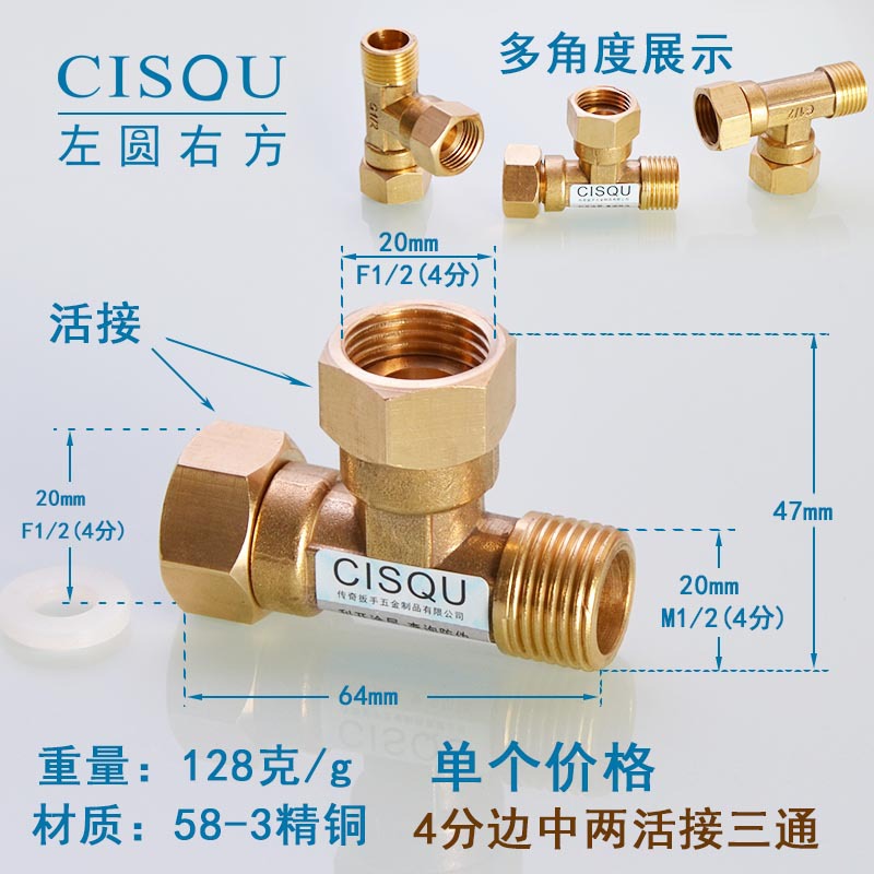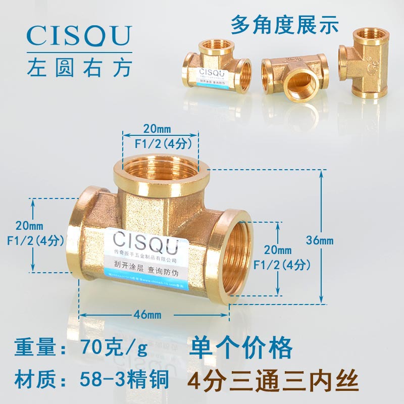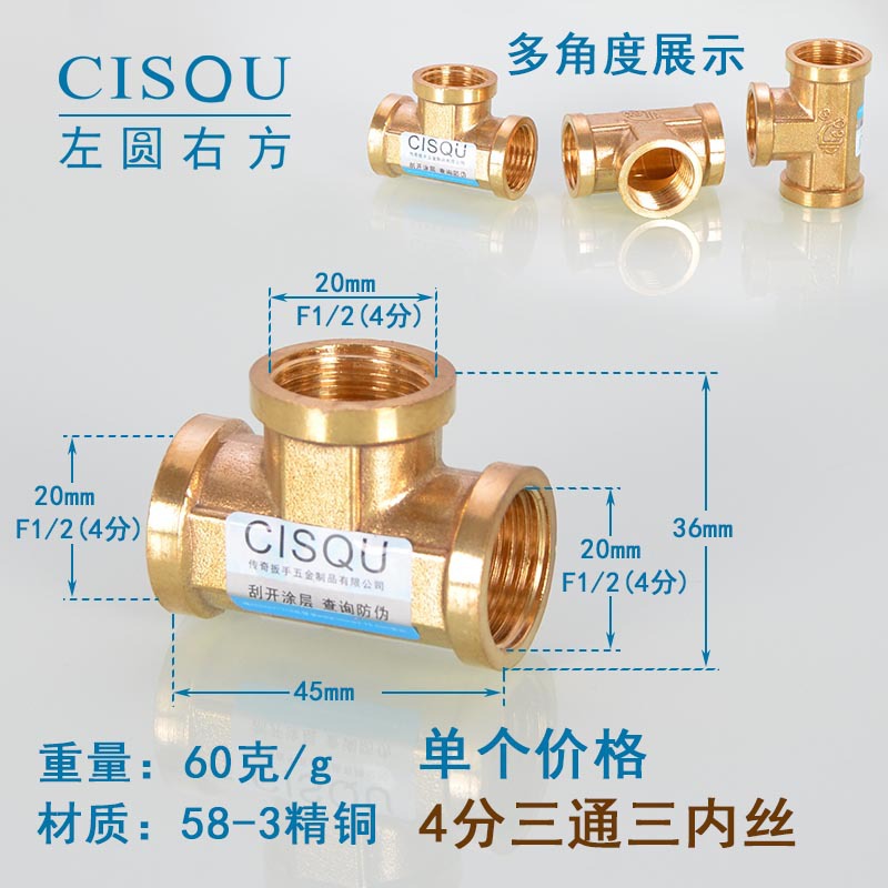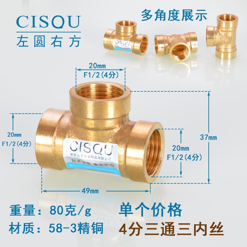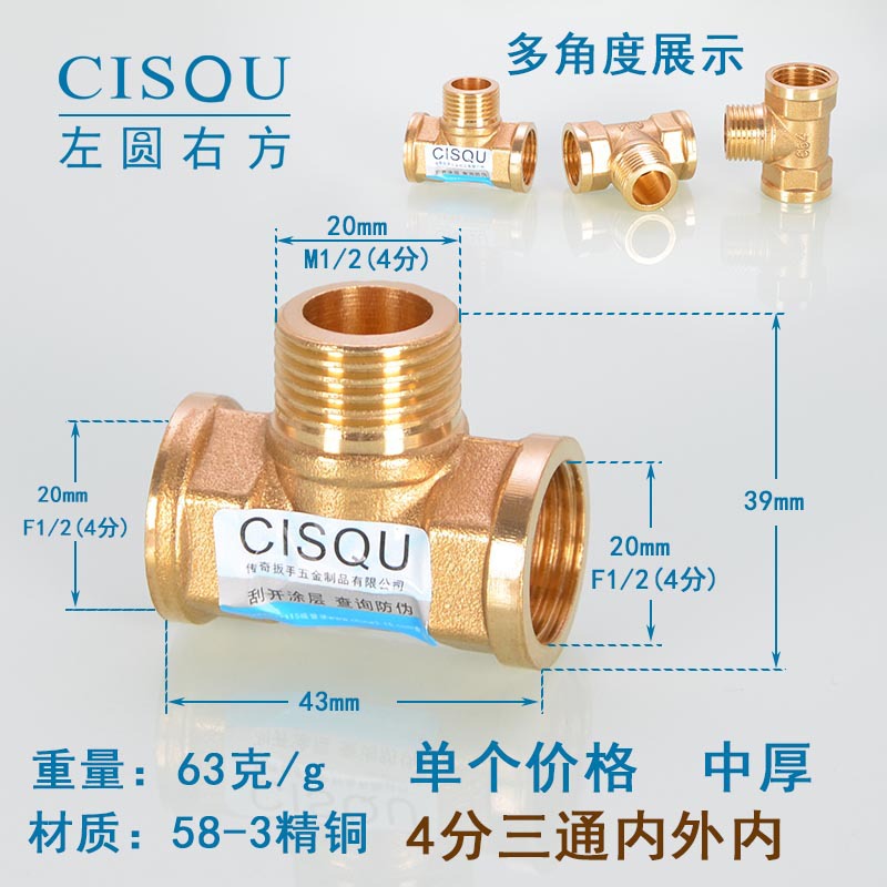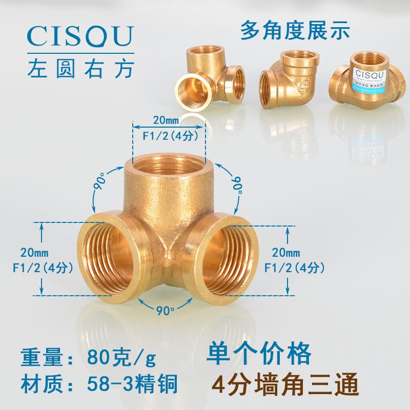 4-точечный утолщенный латунный тройник, три внешних провода, внутренний провод, внешняя внутренняя резьба, газовая труба, водонагреватель, аксессуары для водопроводных труб