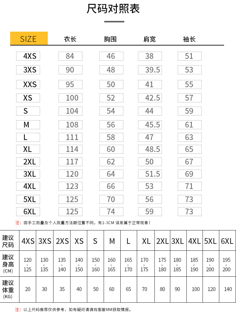 XS; S; M; L; XL; XXL; XXXL; 4XS; 3XS; 2XS; 4XL; 5XL; 6XL