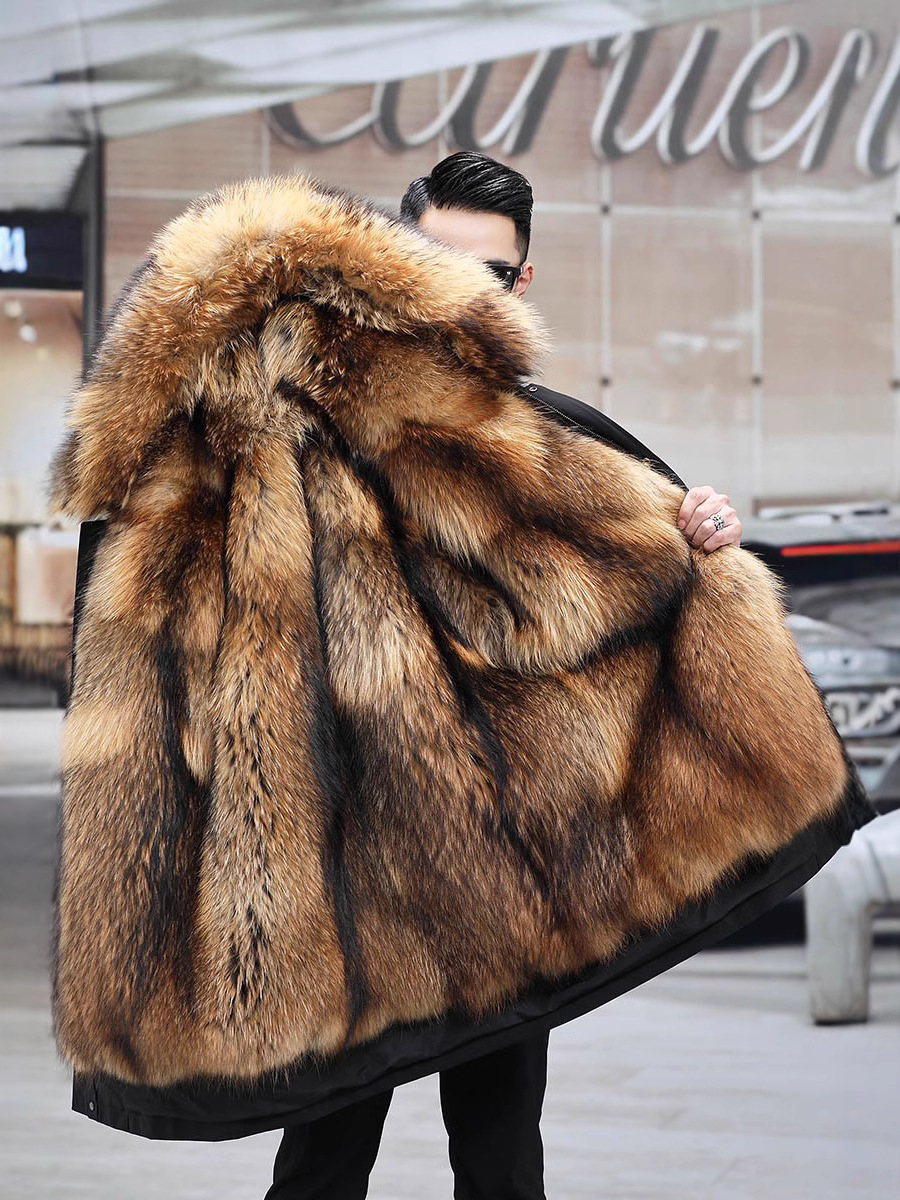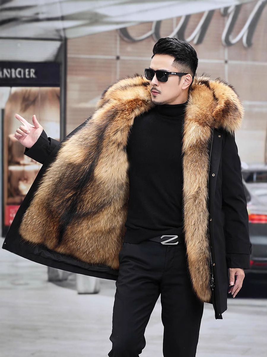 Зима 2029, новый стиль, парка, верхняя одежда из меха, мужская верхняя одежда средней длины со съемной подкладкой из искусственного меха норки, бархатная верхняя одежда