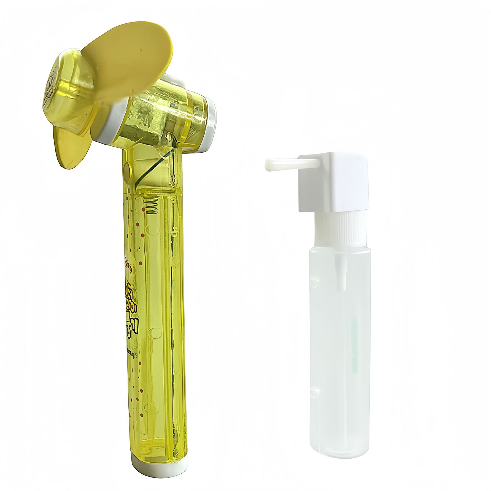 产品货号:GS860(2XAA电池) 产品名称:喷水风扇 产品材质:风扇PS,壶体PP 产品尺寸:7.5X3X16CM 产品克重:57g 电池:AA*2 (2节5号电池)不含电池 装箱尺寸:35.6X32.3X31.5CM 毛重:9KGS 装箱数量:100PCS 最小起订量:10000PCS 包装方式:白盒